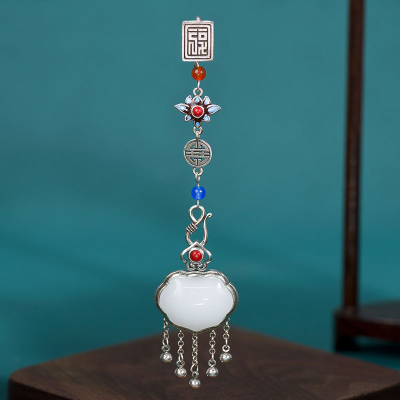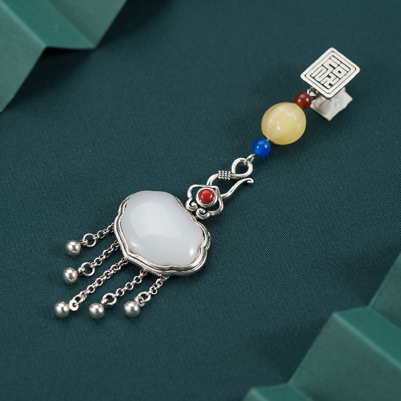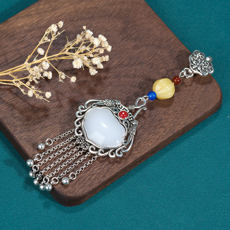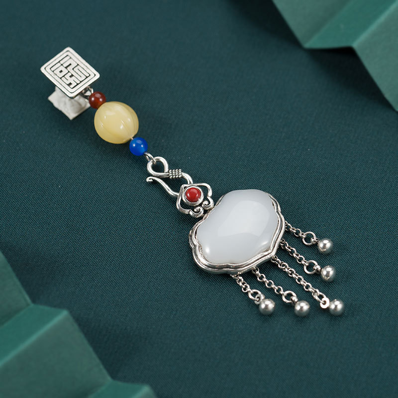Satisfactory Ruyi copper silver-plated original placket tassel Chinese style cheongsam pendant imitation Hetian jade Hanfu pendant accessories