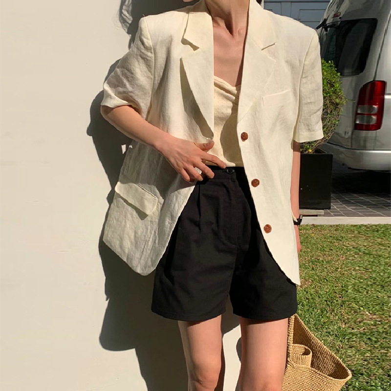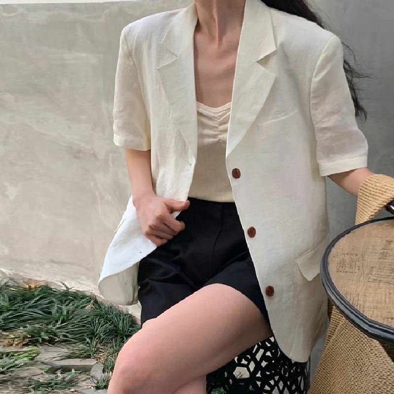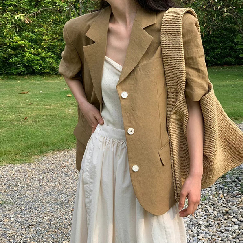 SC2024 Summer New South Korea Dongdaemun Retro Elegant Loose Slimming Linen Short-sleeved Small Suit Jacket for Women