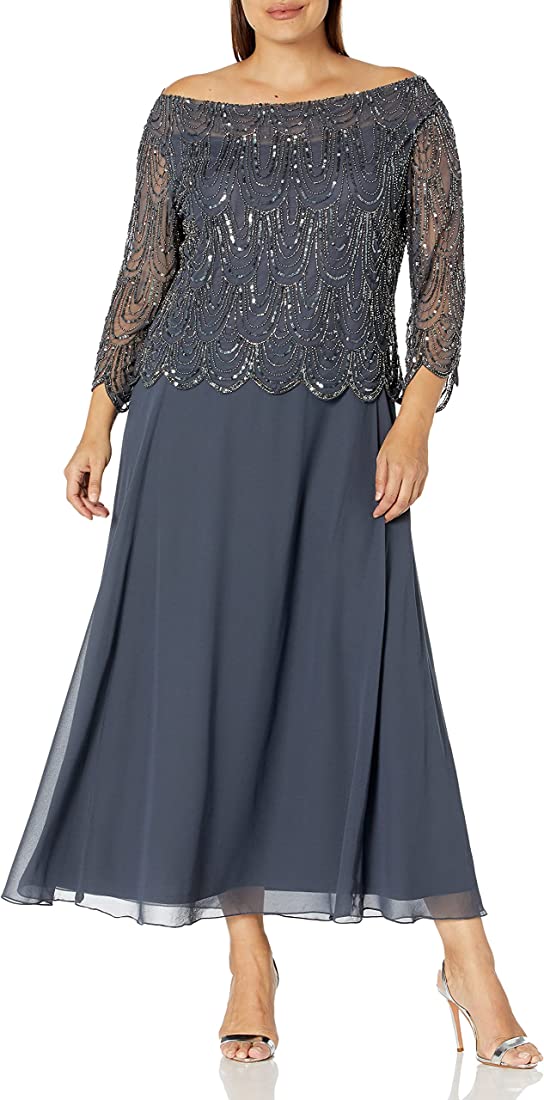 | nameOriginal | J Kara Women's Size 3/4 Scallop Beaded Pop Over Gown Plus |