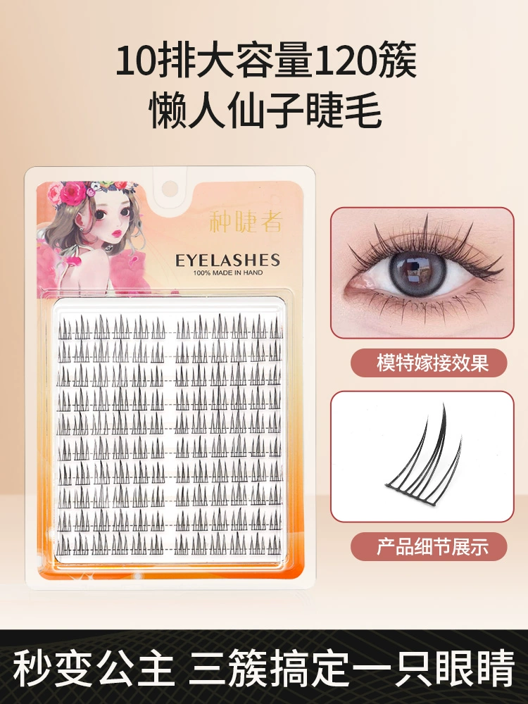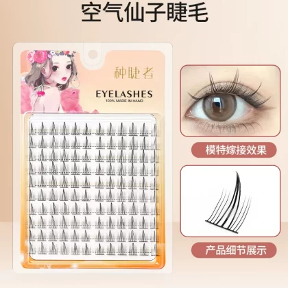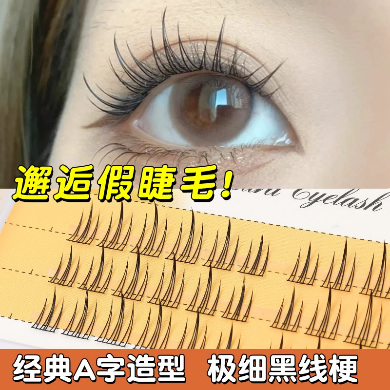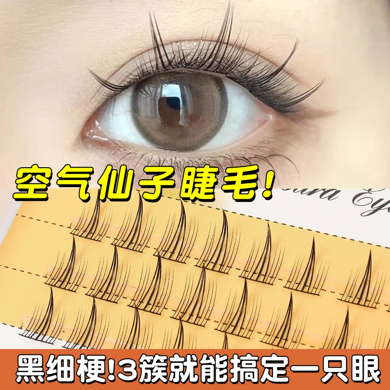 Scarecrow False Eyelashes for Women, Natural Fairy A-type Cat Ears, Single Cluster Trilogy, Thin Stems, Little Devil Mommy Eyelashes