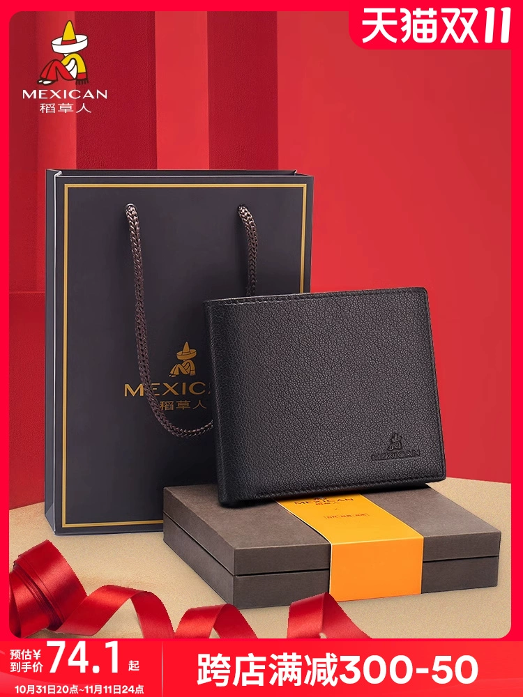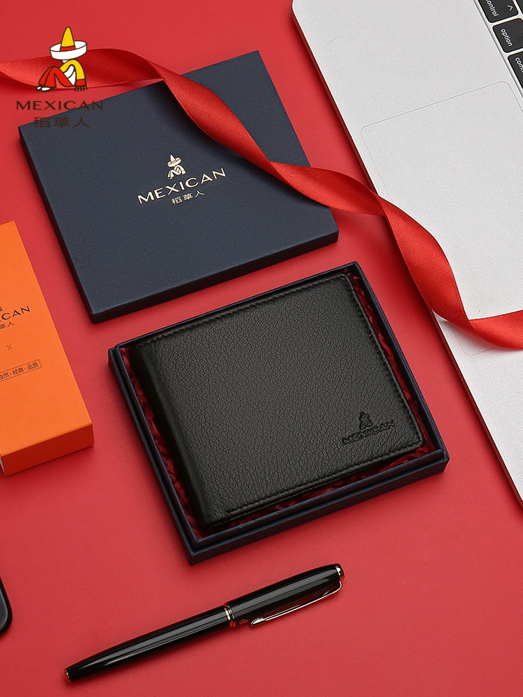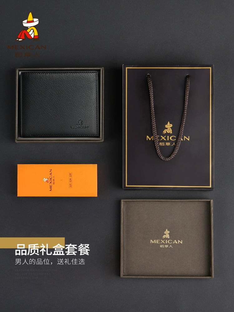 Scarecrow wallet men's short trendy brand high-end genuine leather wallet dad's birthday gift for boyfriend practical