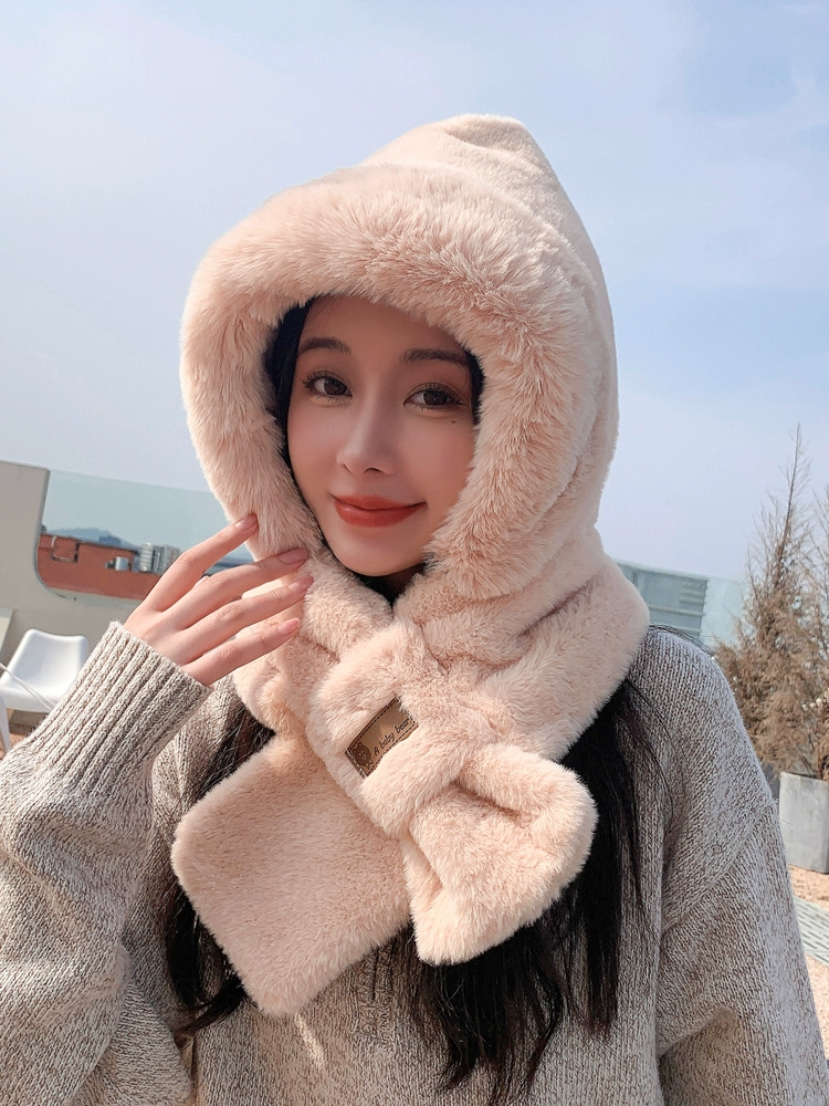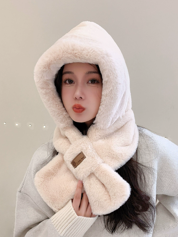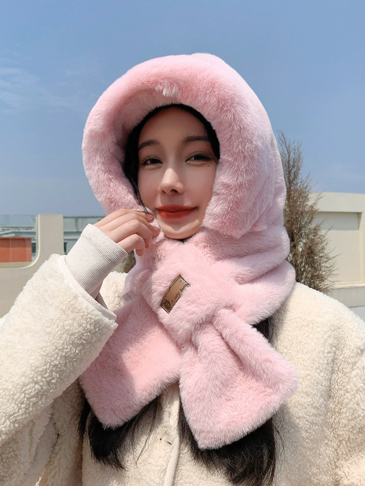 Scarf and hat integrated autumn and winter warm plush scarf thickened cold wind cycling ear protection hat 2024 new style for women