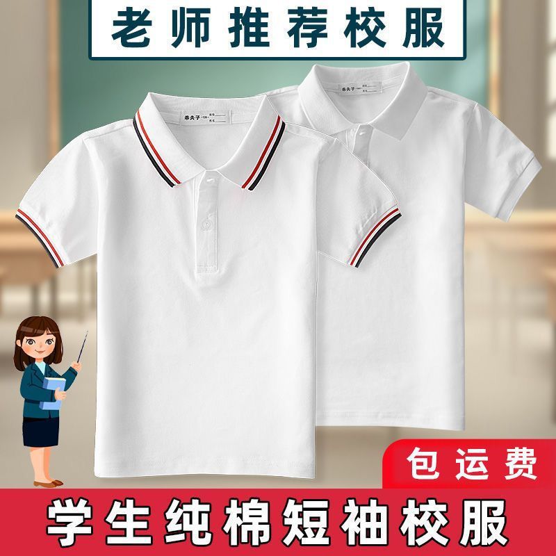 | nameOriginal | School Uniform for Primary and Middle School Students Short-sleeved T-shirt Summer suit High School Students White Top Polo Shirt Junior High School Class Clothes |