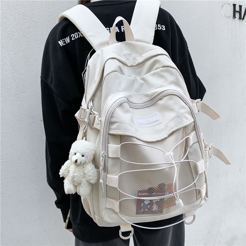 | nameOriginal | Schoolbag female 2023 new junior high school student solid color nylon backpack large capacity college style student backpack |