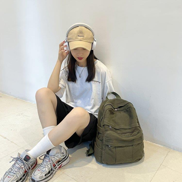 | nameOriginal | Schoolbag female ins Hong Kong style Mori retro distressed College student backpack female European and American fashion washed canvas backpack |