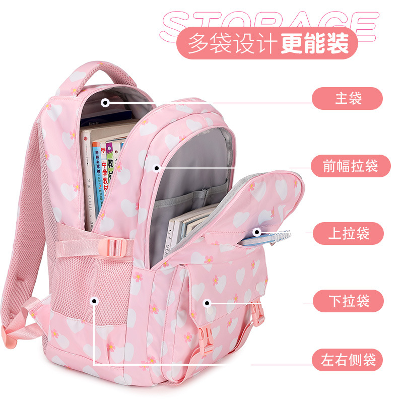 | nameOriginal | Schoolbag Female Primary School Grade Three to Six Large Capacity Waterproof Backpack Children's Lightweight Backpack Cross-border New Style |