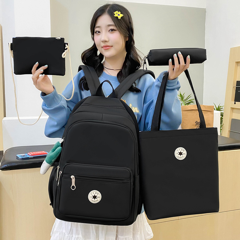 Schoolbag Women's Korean-style Senior high school Simple Contrast Color Ins Japanese Junior High School Campus Four-piece Large Capacity Backpack