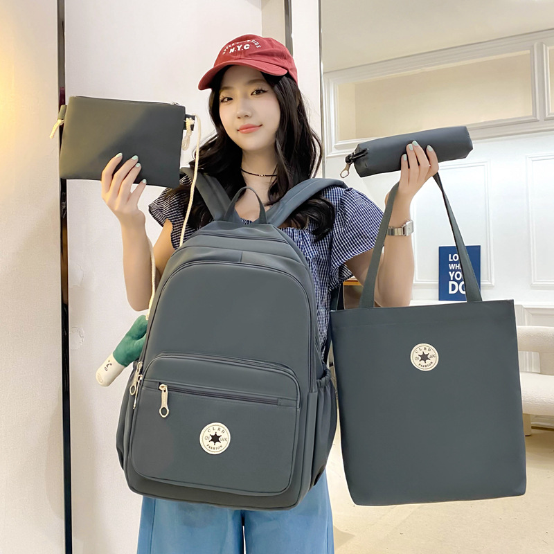 Schoolbag Women’s Korean-style Senior high school Simple Contrast Color Ins Japanese Junior High School Campus Four-piece Large Capacity Backpack