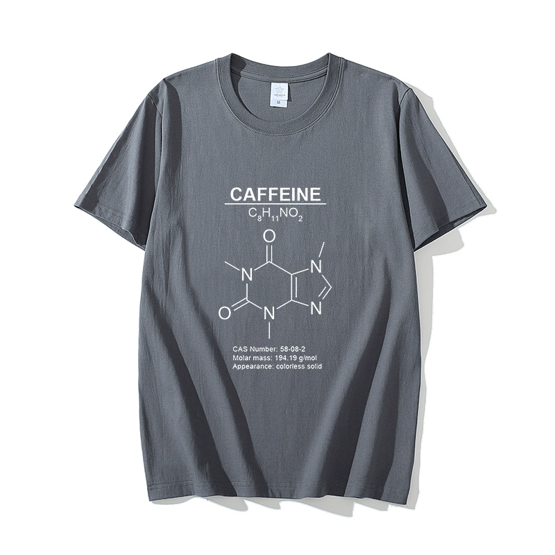 Science Chemistry Caffeine molecular formula short-sleeved cotton round neck academic master young student T-shirt for men