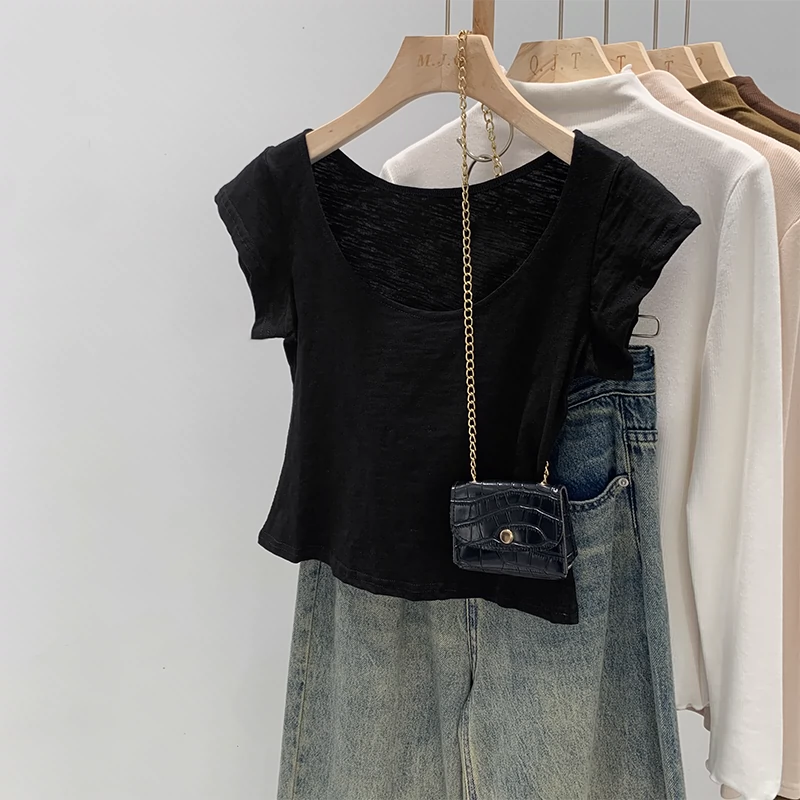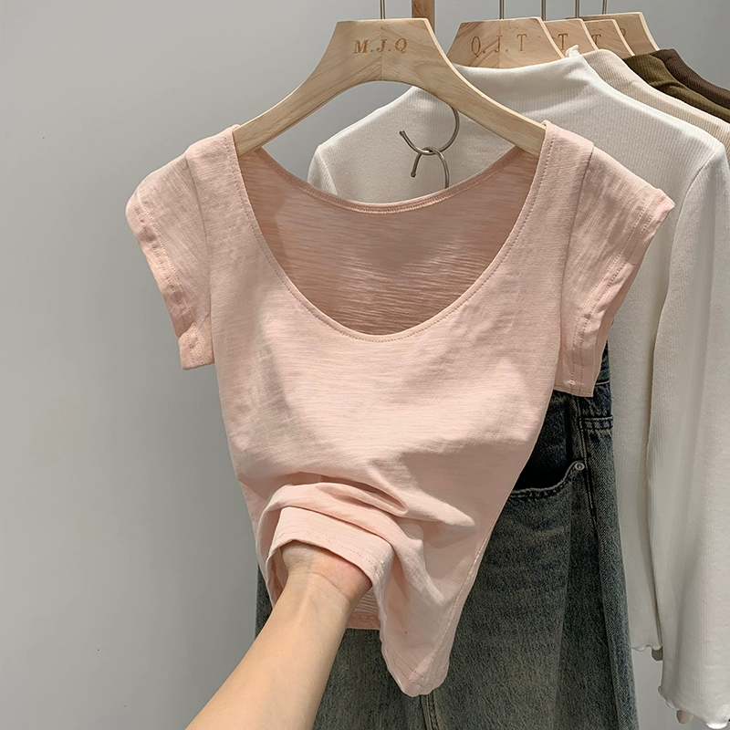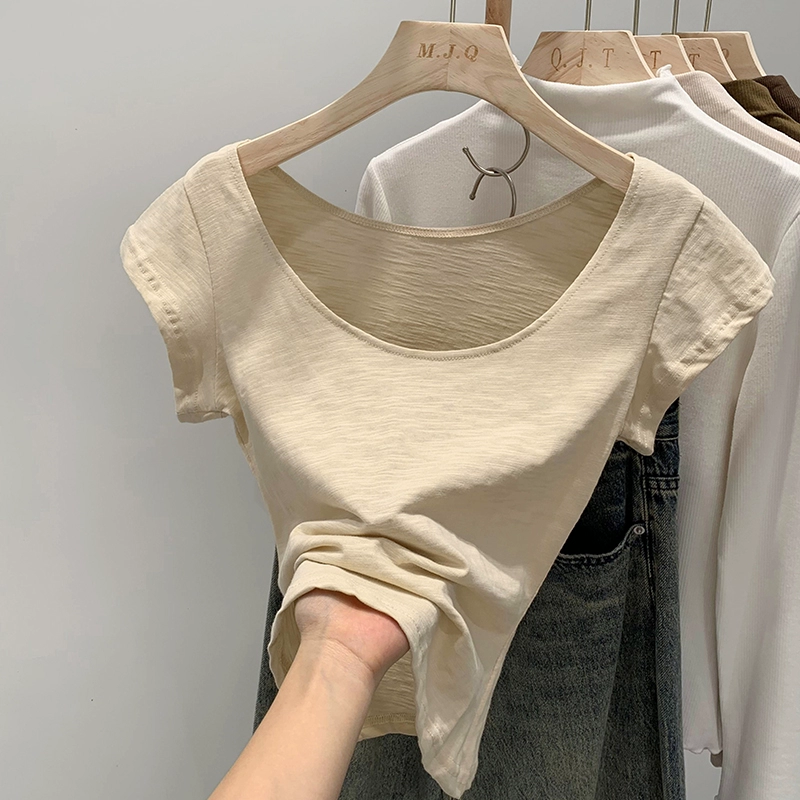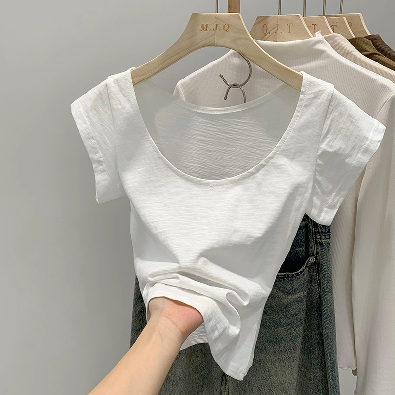 | nameOriginal | Scoop neck solid color slim fit bottoming top short-sleeved T-shirt |