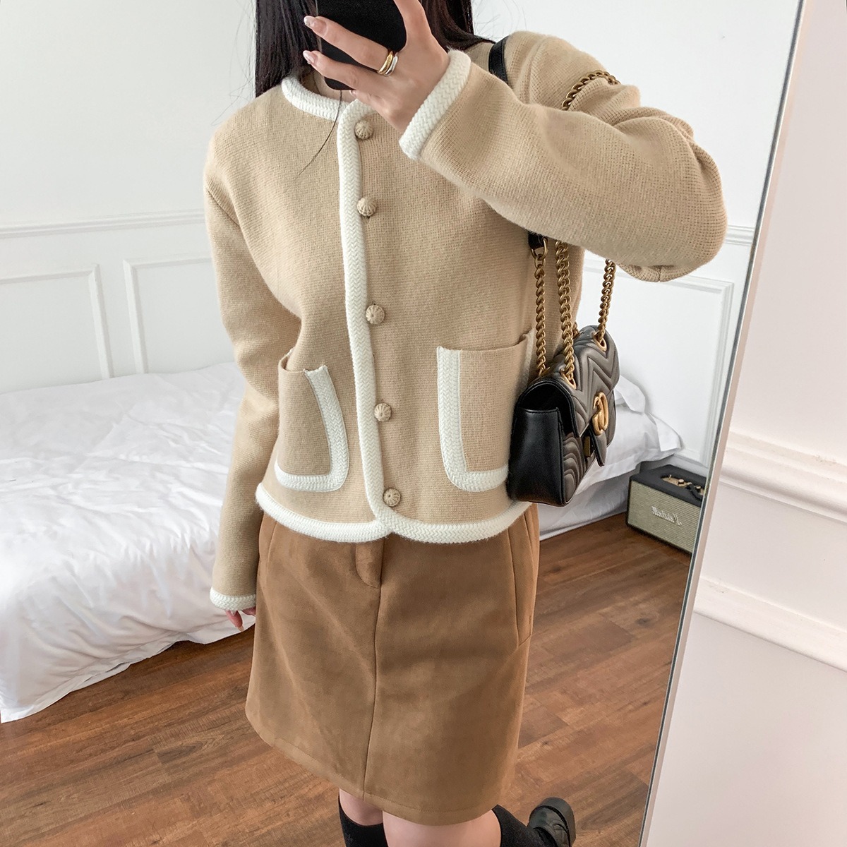 | nameOriginal | SE French style contrast color knitted trim short coat single-breasted casual top elegant Chanel style jacket for women |