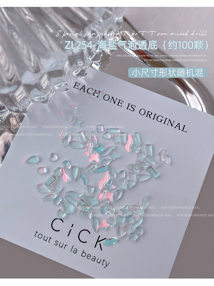 | nameOriginal | Sea salt bubble special-shaped diamond small see-through champagne manicure |