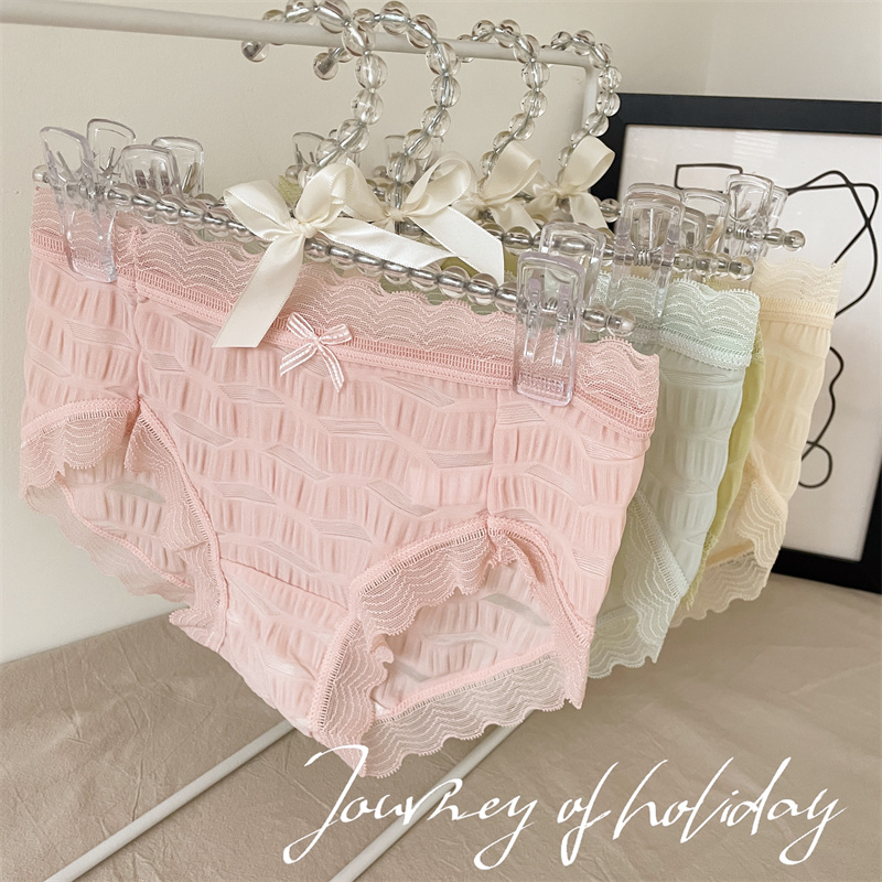 | nameOriginal | Sea Salt Seersucker Soft Comfortable Hollow Transparent Sexy Horizontal Stripe Girls INS Style Underwear Women's Triangle Lace |