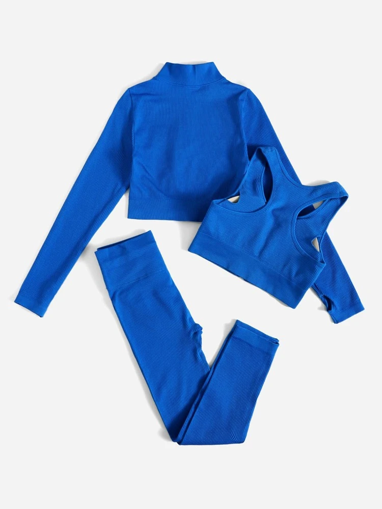 | nameOriginal | 3pcs Seamless High Stretch Workout Suit Fitness Set Zip Up Tank Bra & Jacket & Leggings |