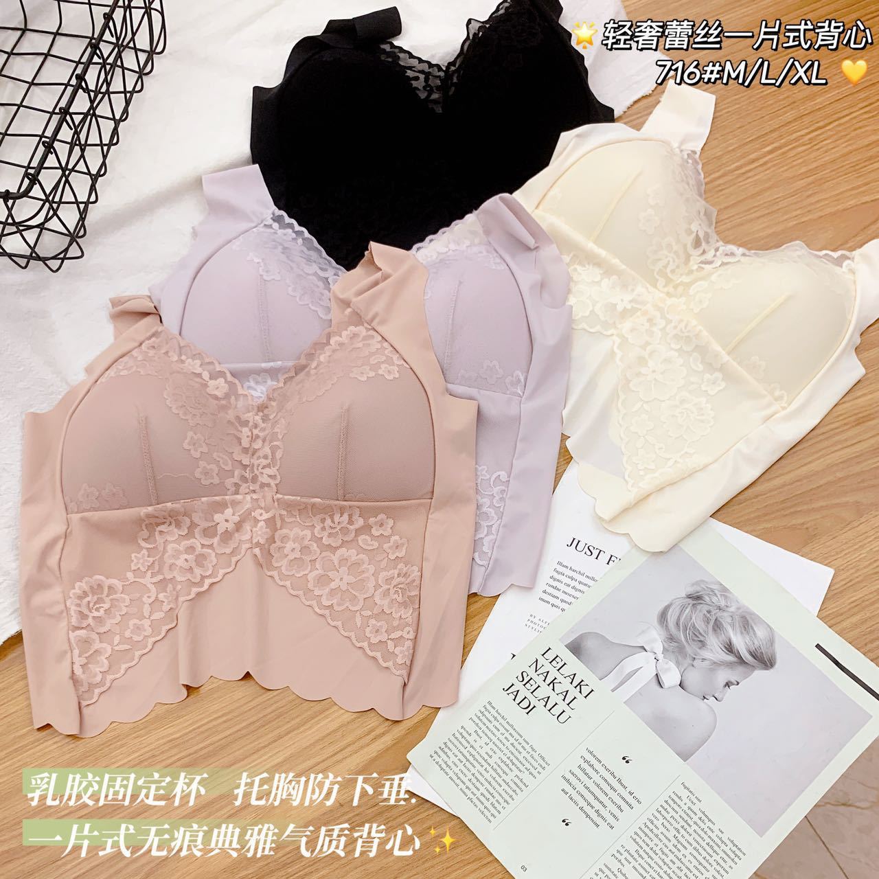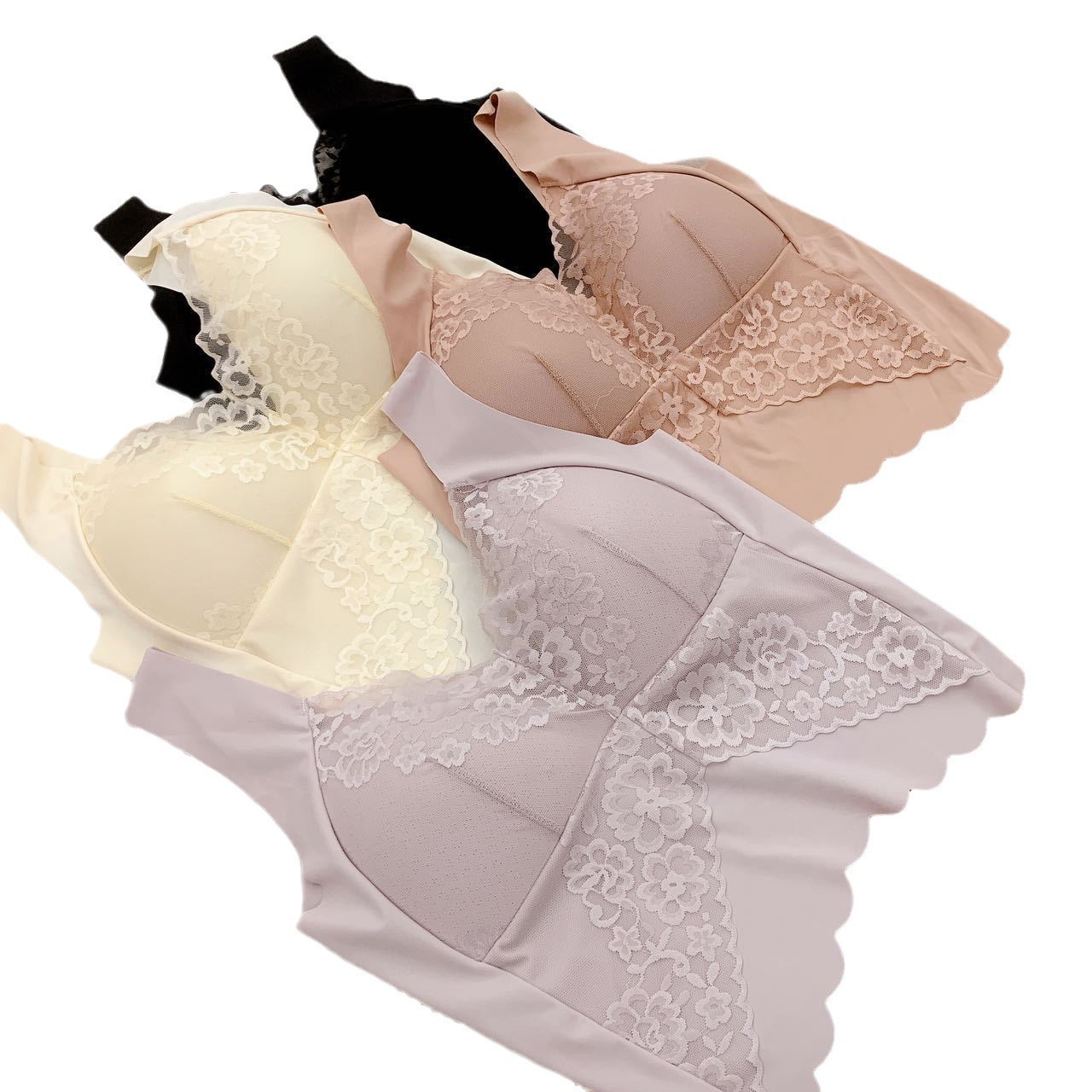 | nameOriginal | Seamless Back Lace One-piece Fixed Cup Latex Elegant Ultra-thin Light Luxury Skin-friendly Sling Base Shirt |