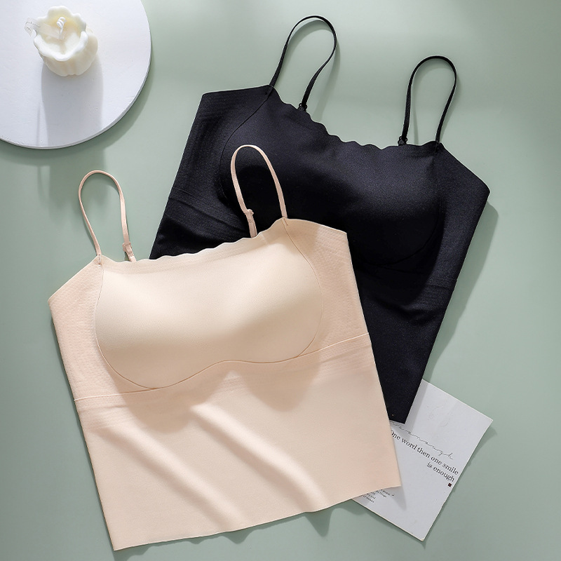 Seamless beauty back strap one-piece summer thin underwear fixed Cup vest-style small chest wireless push up bra for women