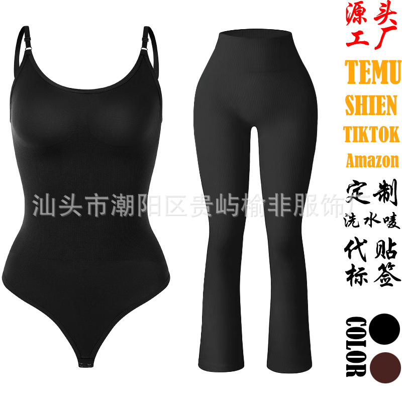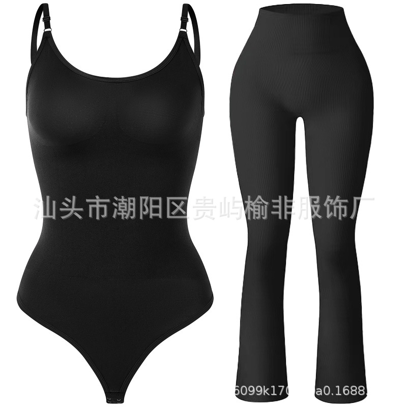 Seamless Body Shaping Split suit Backless Thong Jumpsuit Women's Yoga Wide Leg Pants