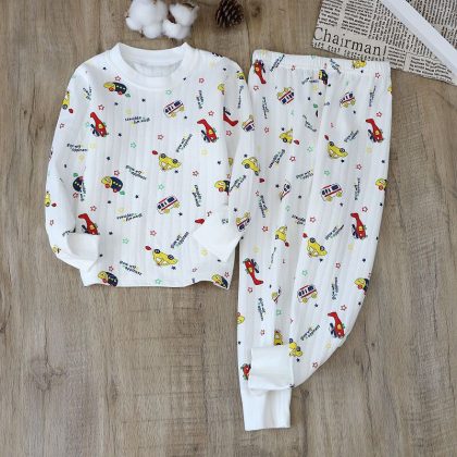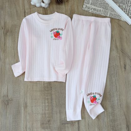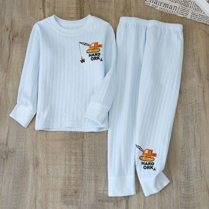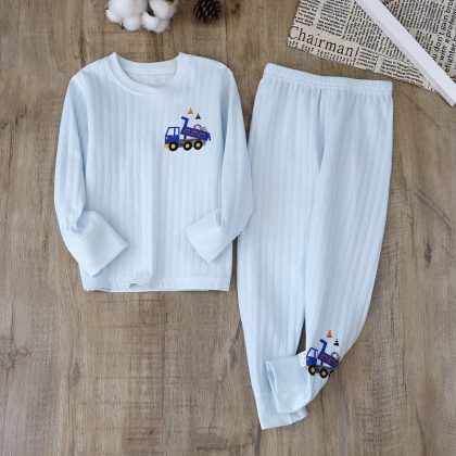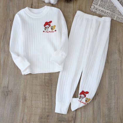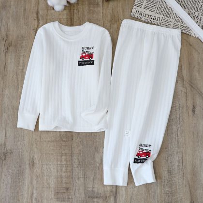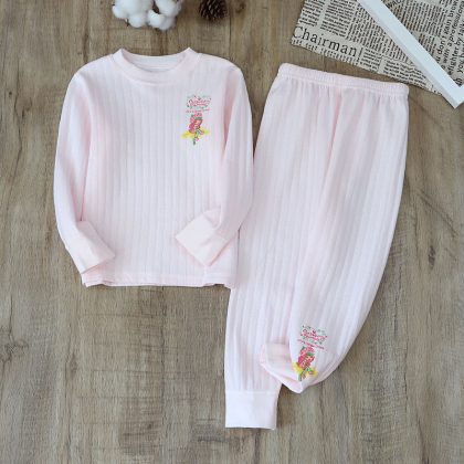 Seamless crotch children’s underwear suit boys and girls Baby double-layer cotton wool home long underwear spring, autumn and winter