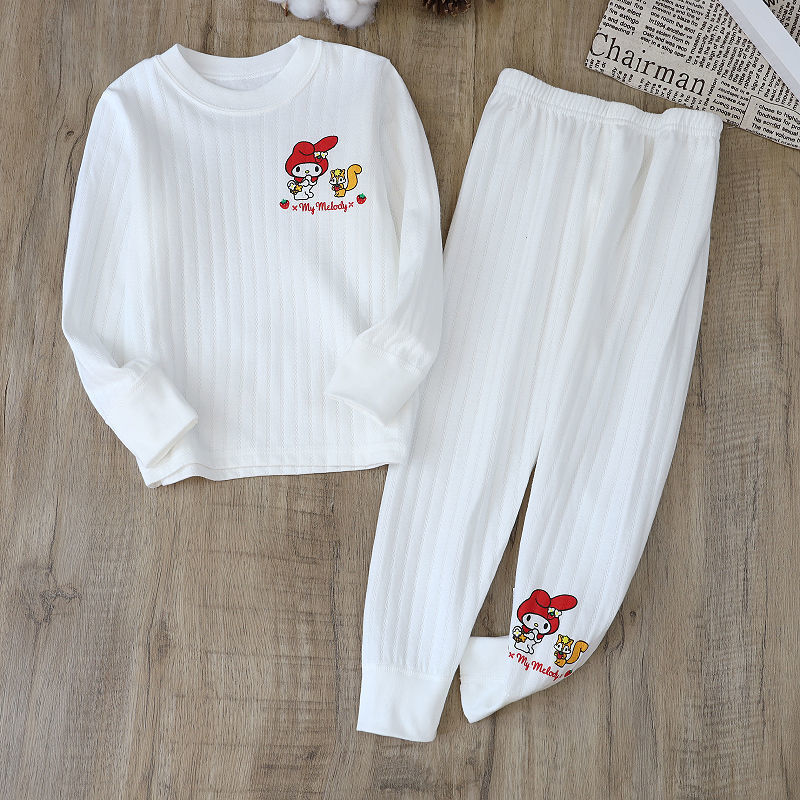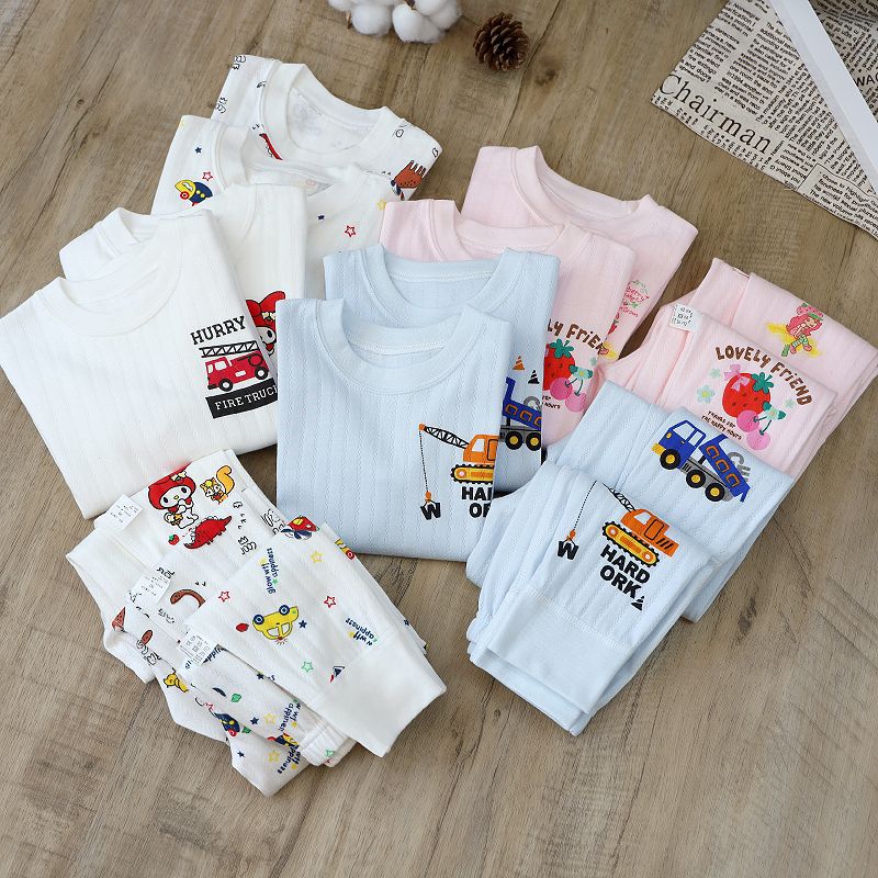 Seamless crotch children's underwear suit boys and girls Baby double-layer cotton wool home long underwear spring, autumn and winter