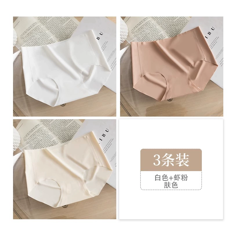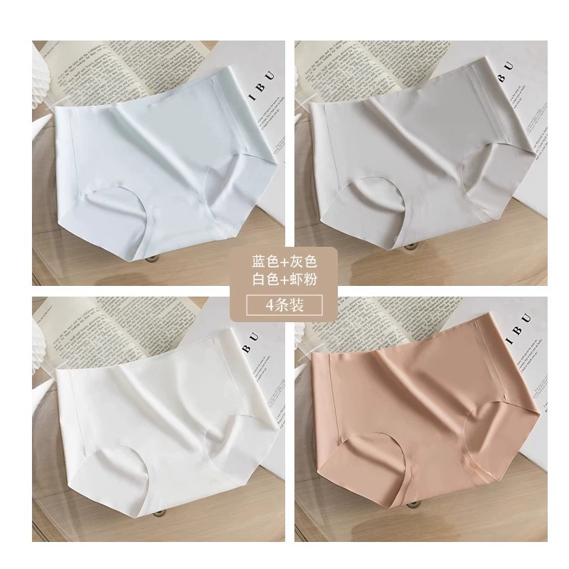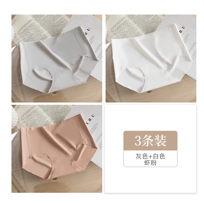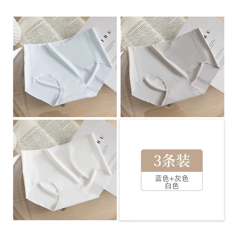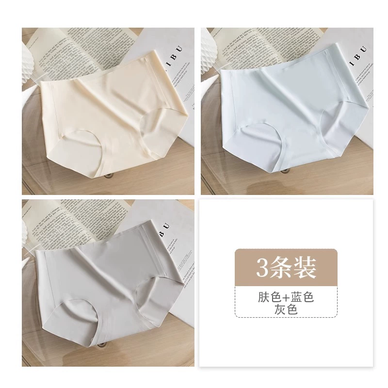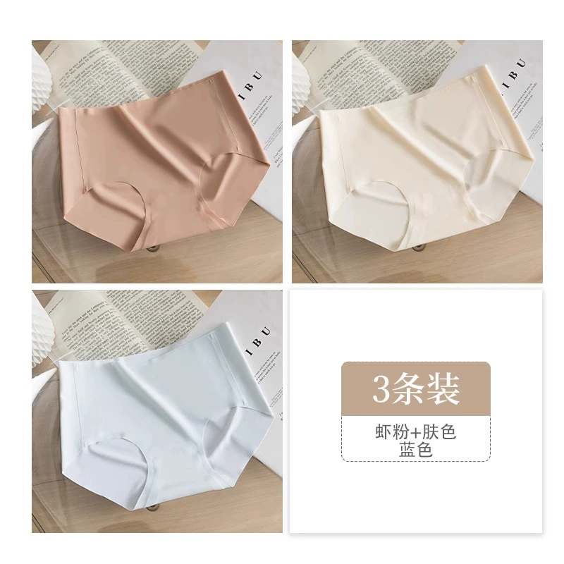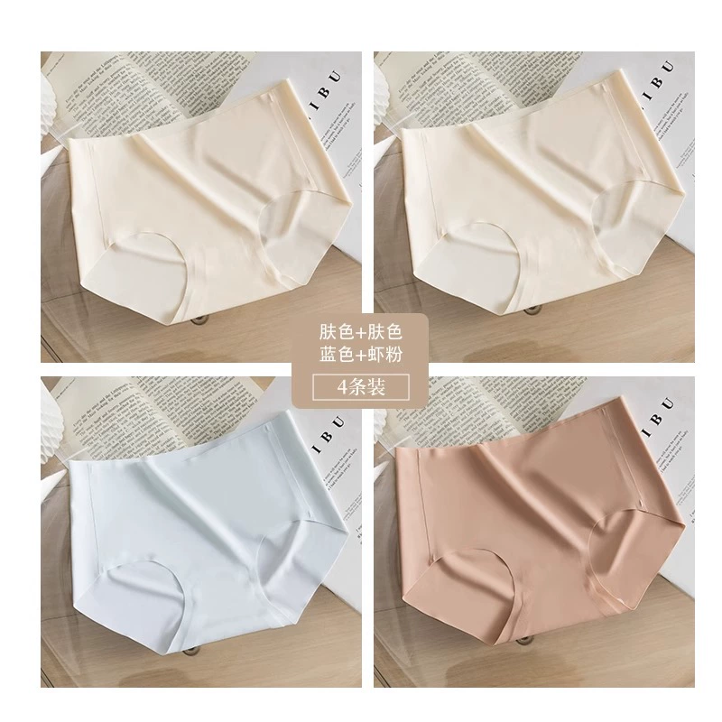 Stainless ice silk underwear for women without hips new pure cotton antibacterial crotch girl mid-waist thin yoga briefs