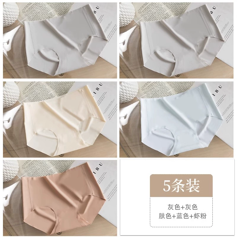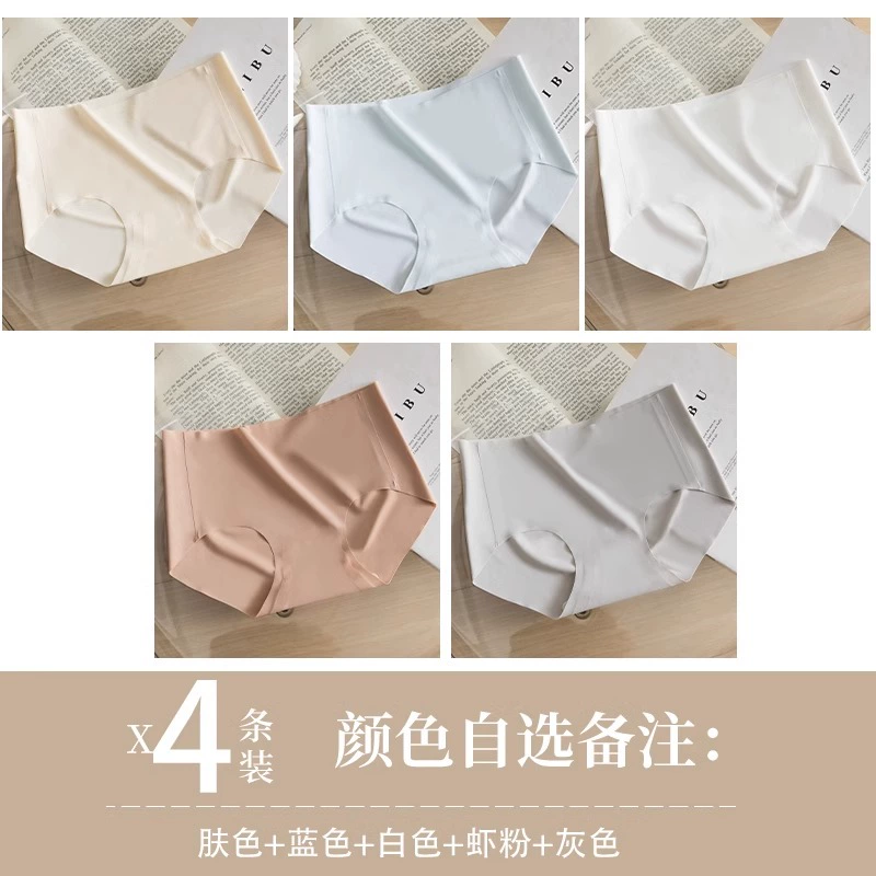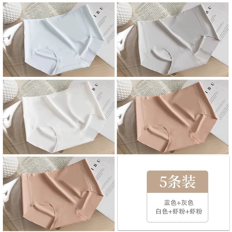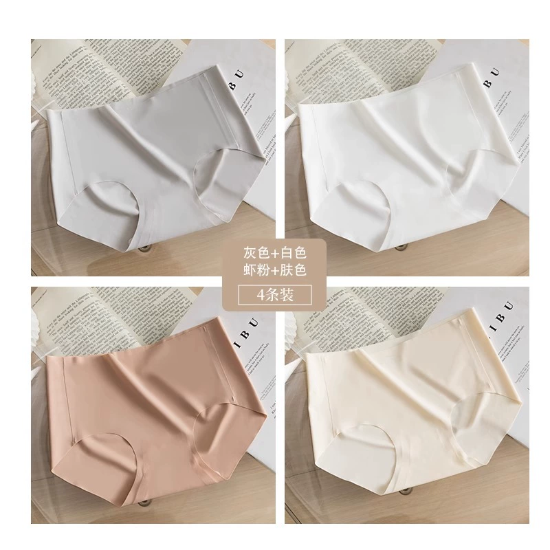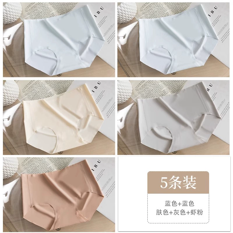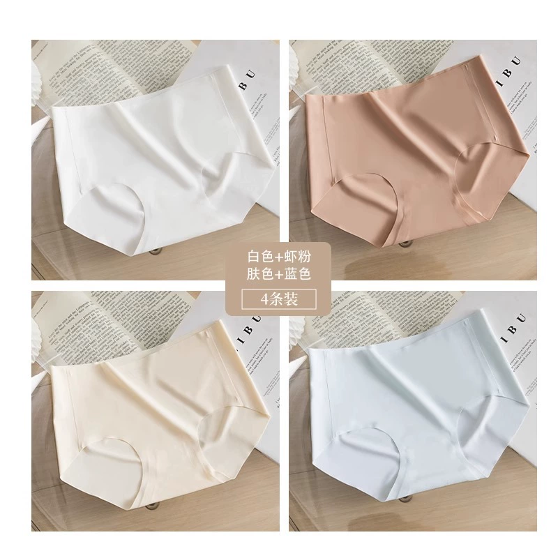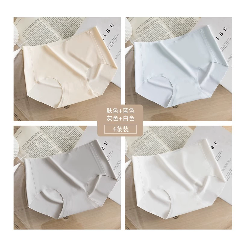 Stainless ice silk underwear for women without hips new pure cotton antibacterial crotch girl mid-waist thin yoga briefs