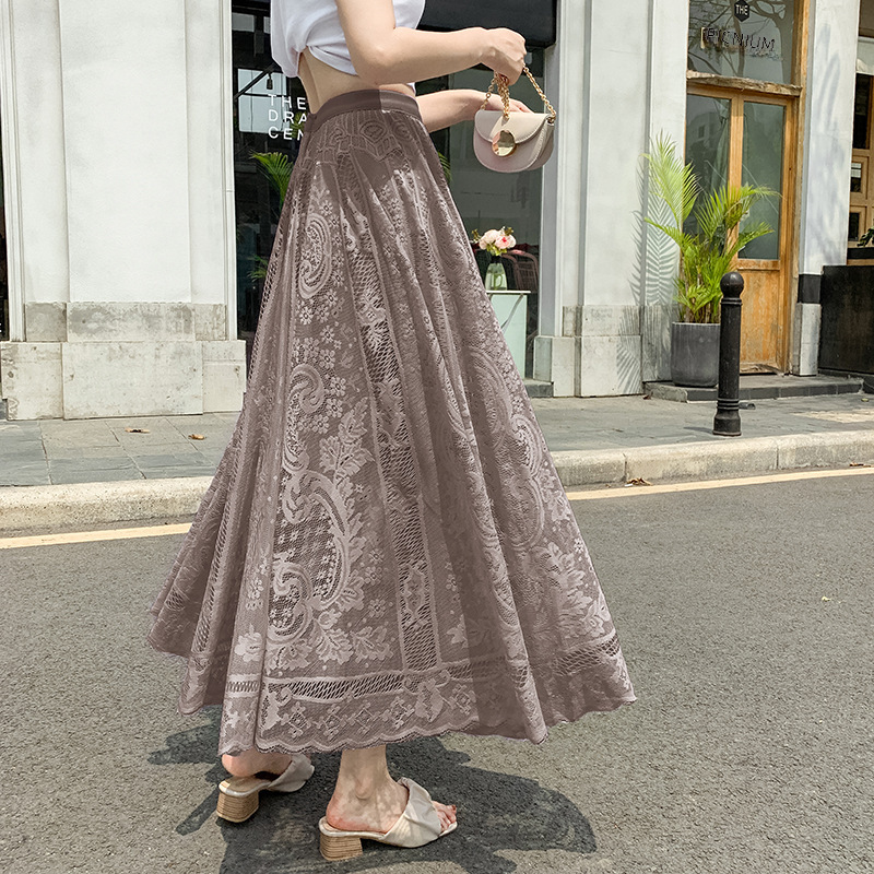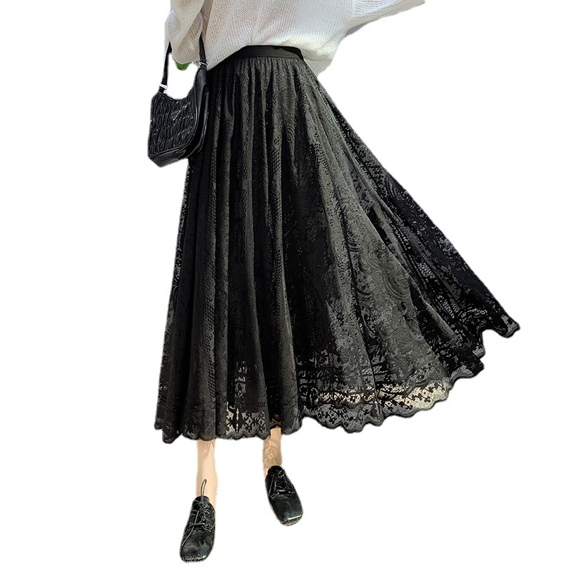 | nameOriginal | Seamless lace fleece-lined large swing skirt slimming cover 2023 spring new high waist A- line pleated mid-length skirt |