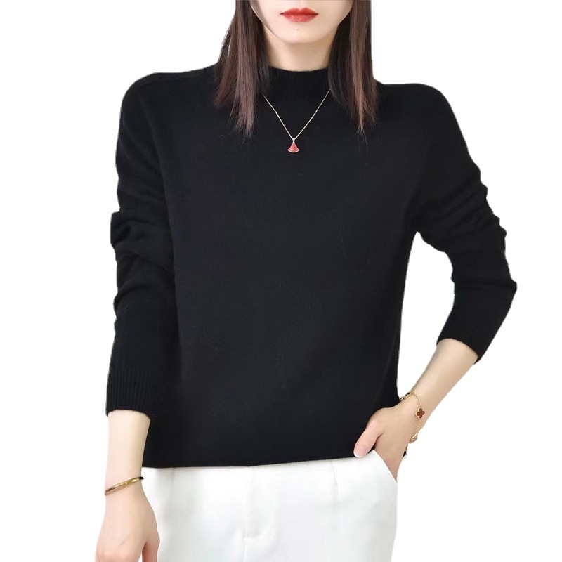 | nameOriginal | Seamless One-piece 100 Pure Wool Cardigan Women's Half-turtleneck Solid Color Loose Casual Women's Knitted Sweater |