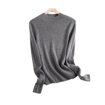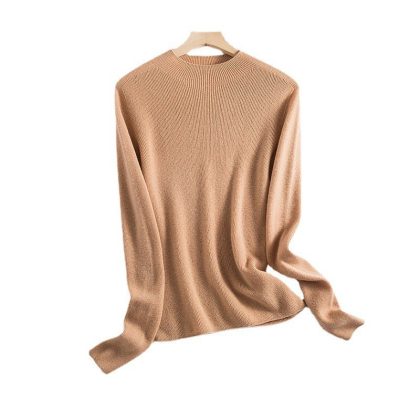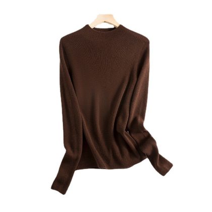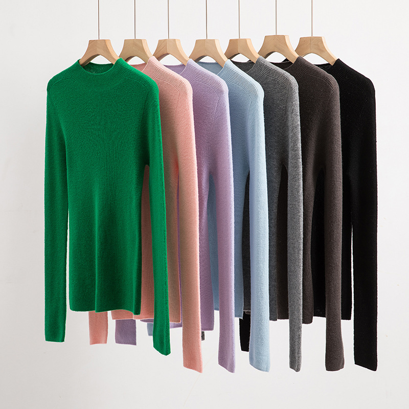 Seamless One-piece Wool Sweater Solid Color Semi-high Neck Base Sweater Women’s Sweater Slim-fit 2024 Autumn and Winter Interior