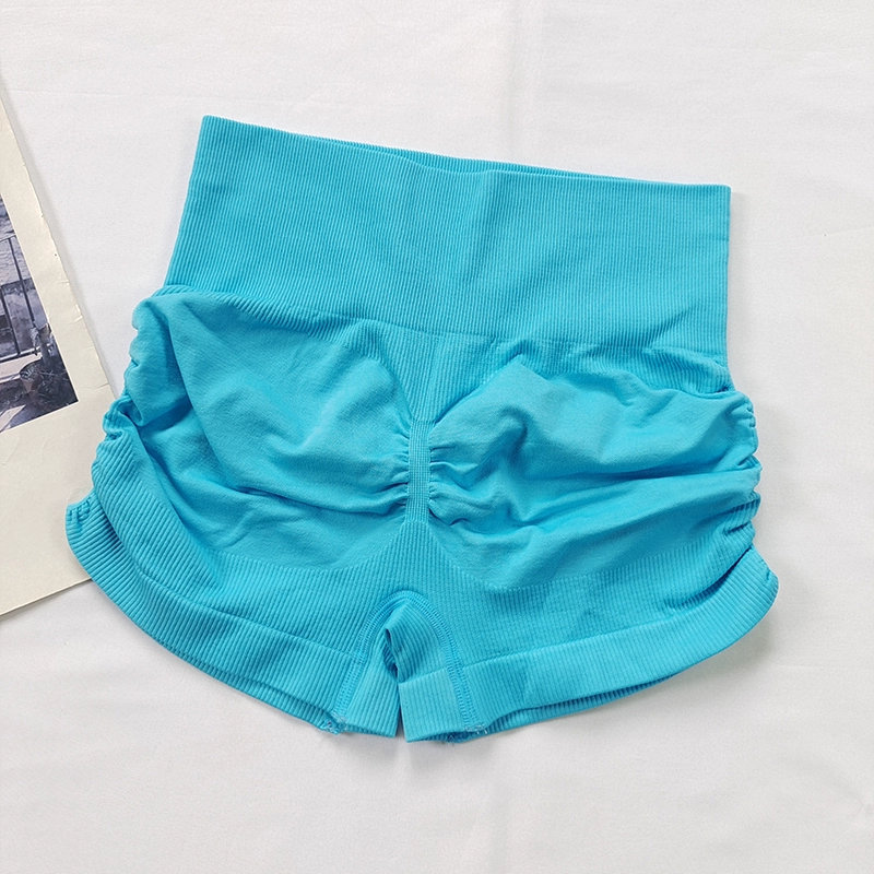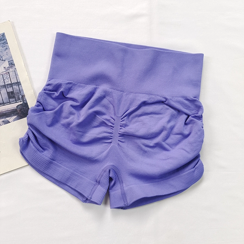 Seamless short pants side folds high waist high waist peach pants sports fitness tightness and breathable training tripod