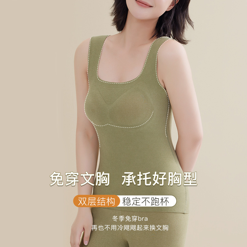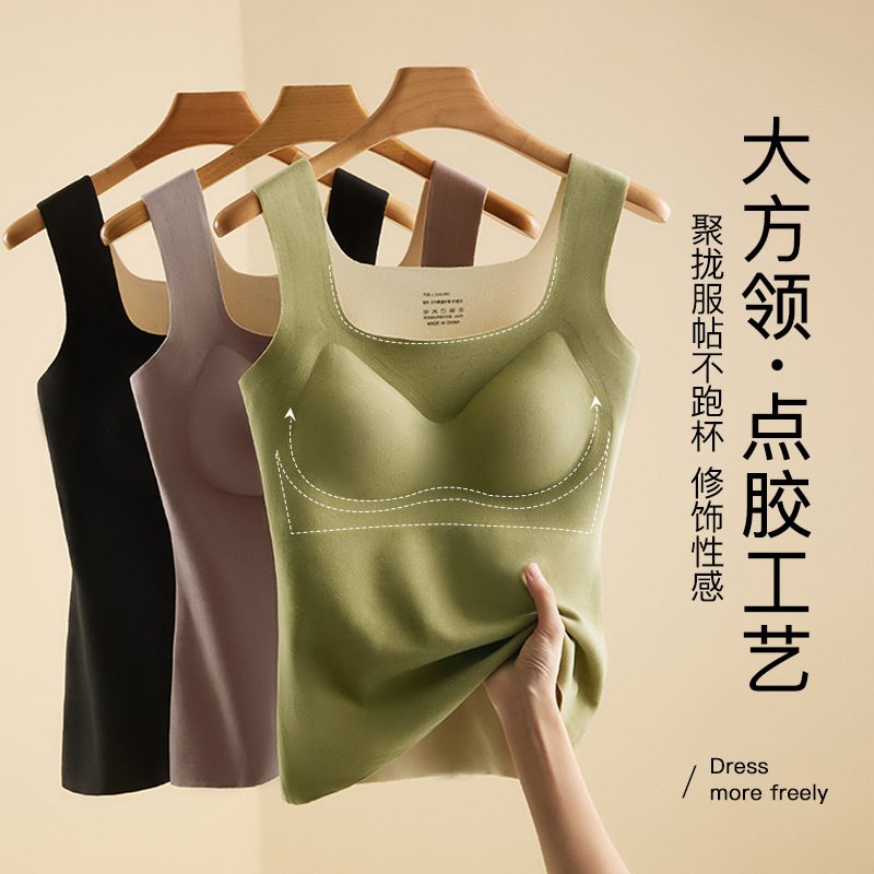 | nameOriginal | Seamless square collar de Velvet thermal underwear women's wear-free bra with chest pad fleece-lined thickened heating vest autumn and winter |