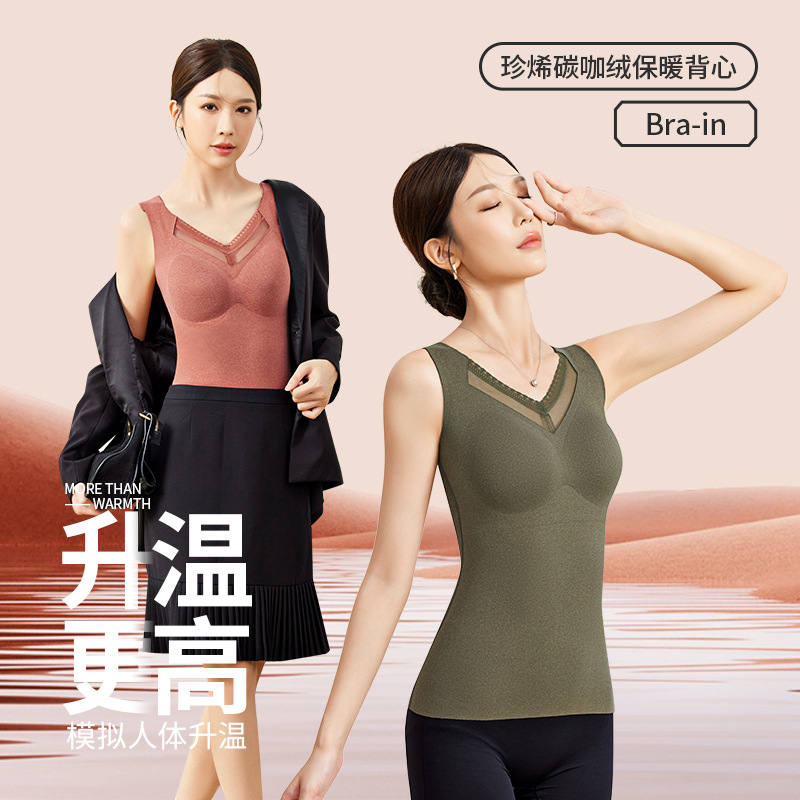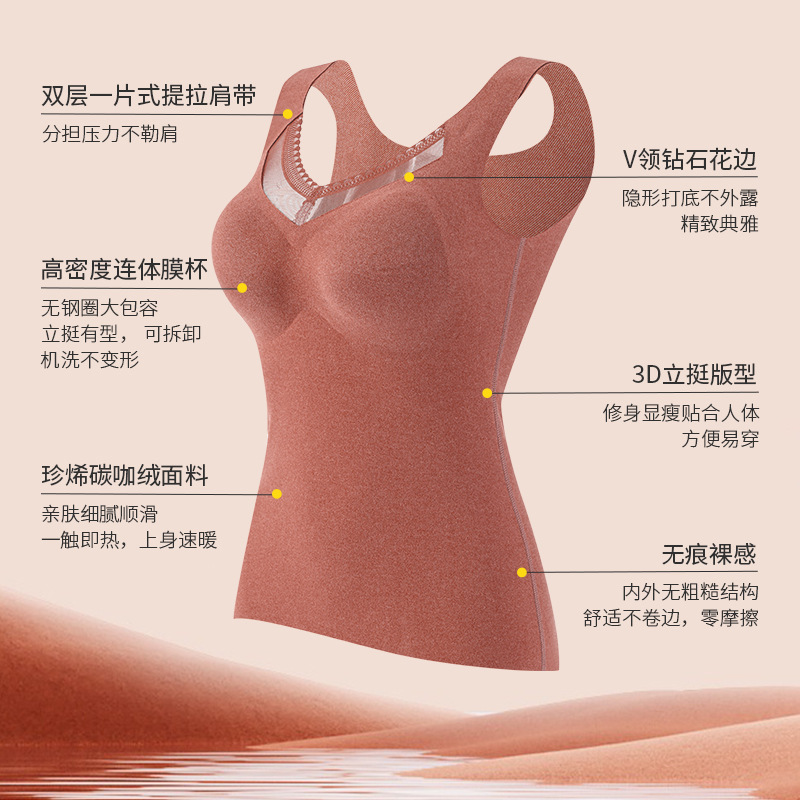 Seamless thermal vest women’s chest pad shaping underwear de Velvet heating autumn clothes bottoming autumn and winter plus size top