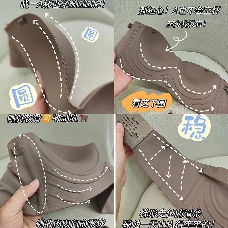 Seamless Underwear Women's Small Chest Push-up Fixed Cup Soft Support Anti-sagging Not Empty Cup Large Strapless Bra