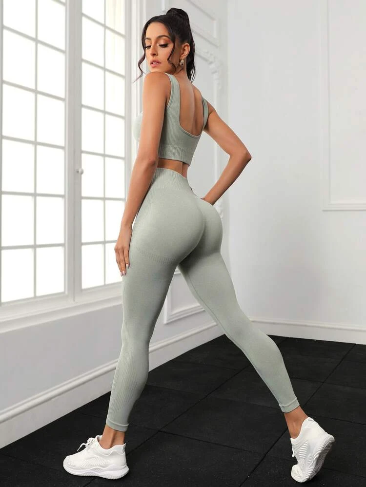 | nameOriginal | 2pcs Ribbed Seamless High Stretch Yoga Set Gym Suit Tank Top & Scrunch Butt Leggings |