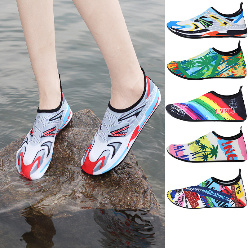 | nameOriginal | Seaside beach shoes children's swimming non-slip soft shoes snorkeling diving wading upstream shoes men's and women's red foot patch skin shoes socks |