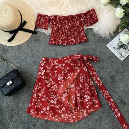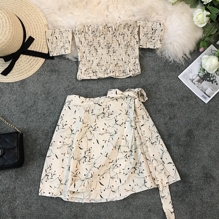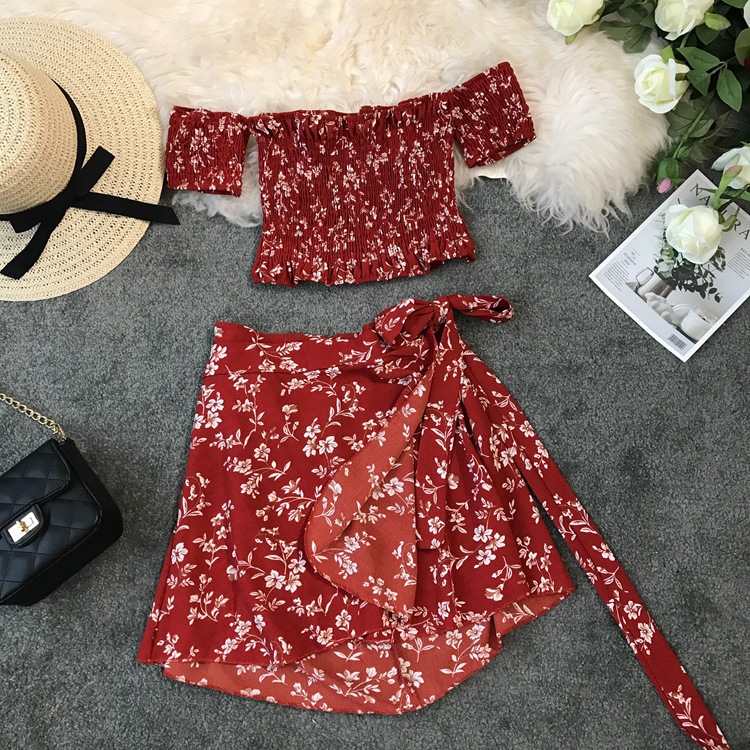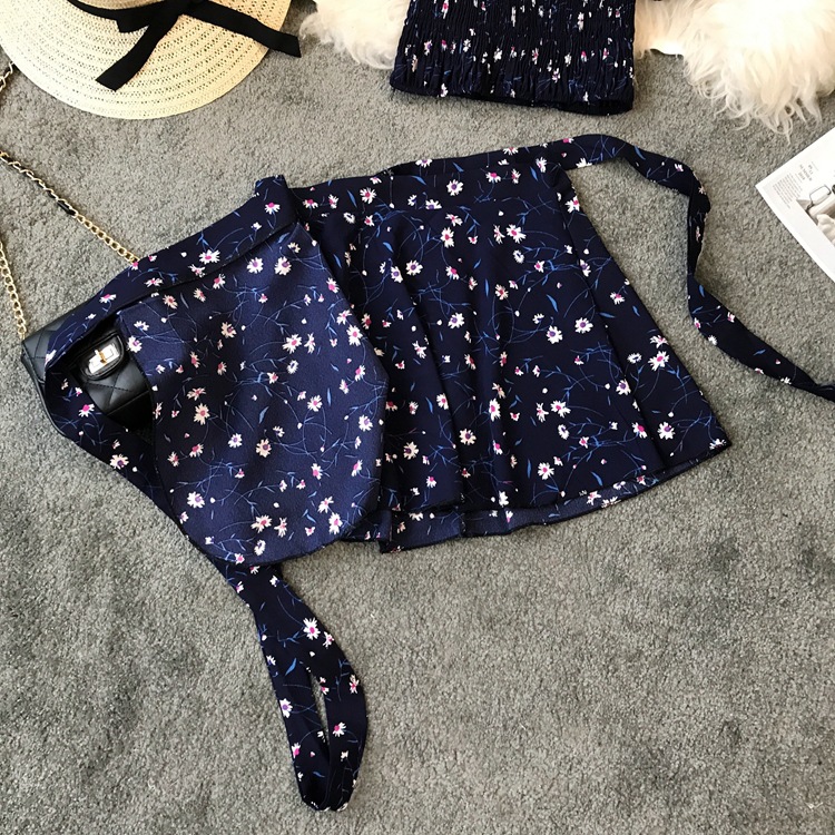 | nameOriginal | Seaside Holiday Printed Flower One-Shoulder Collar Strapless Short High Waist Strap One-piece Skirt Set Two-piece Set |