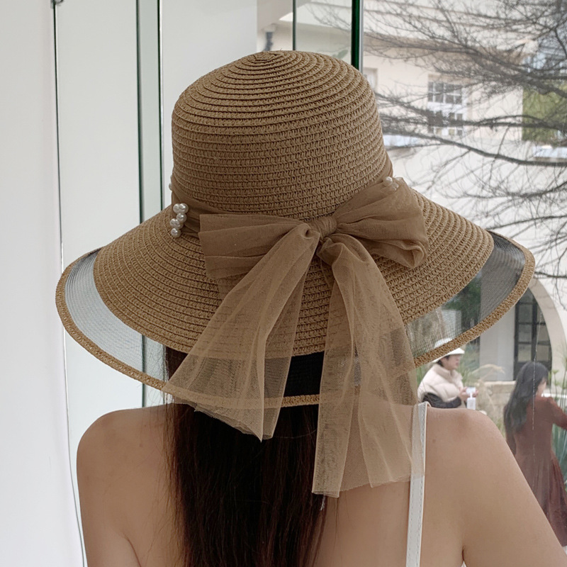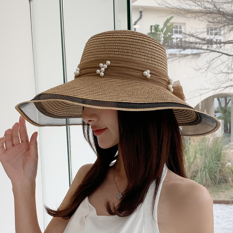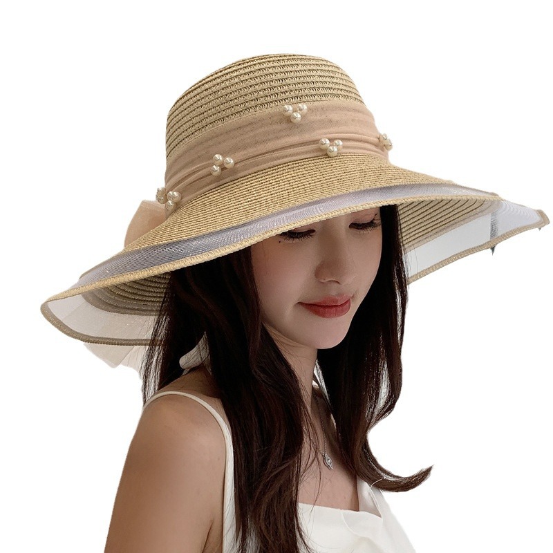 | nameOriginal | Seaside Straw Hat Women's Summer Beach Hat New Mesh Pearl Sun Hat French Style Sun Hat Big Brim Sun Protection Casual Hat |