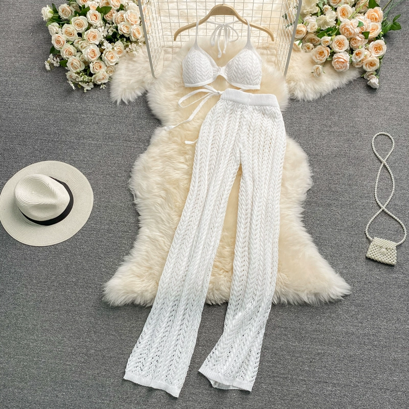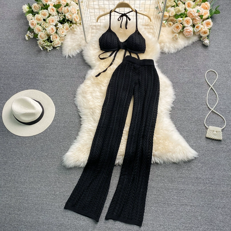 | nameOriginal | Seaside vacation hollow knitted tube top pants with halter neck |