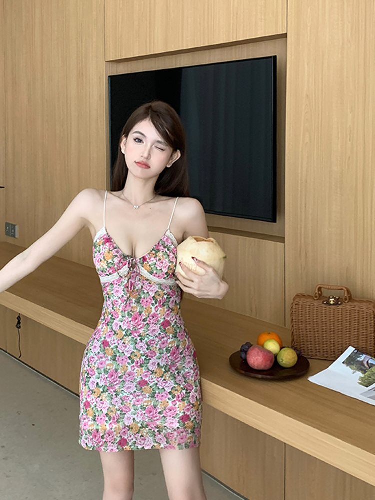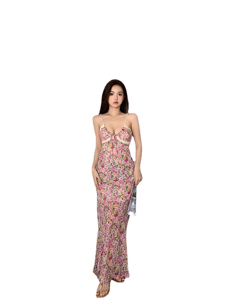 | nameOriginal | Seaside Vacation Style Slim-fit Hip Fishtail Dress 2024 Early Summer French Style Sexy Rose Floral Sling dress Women |