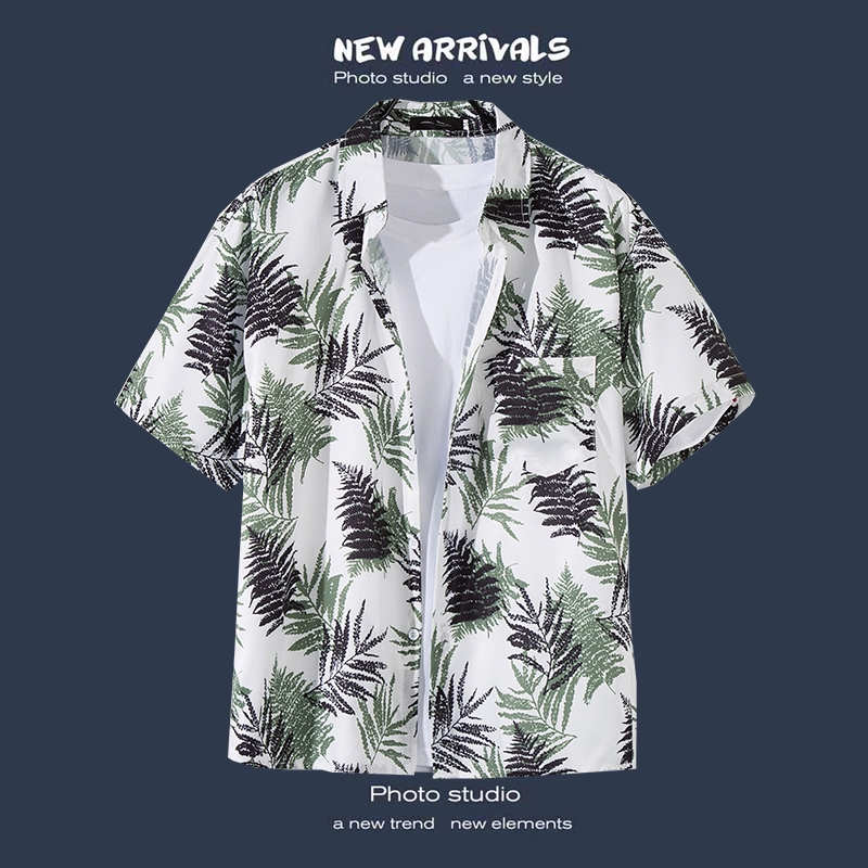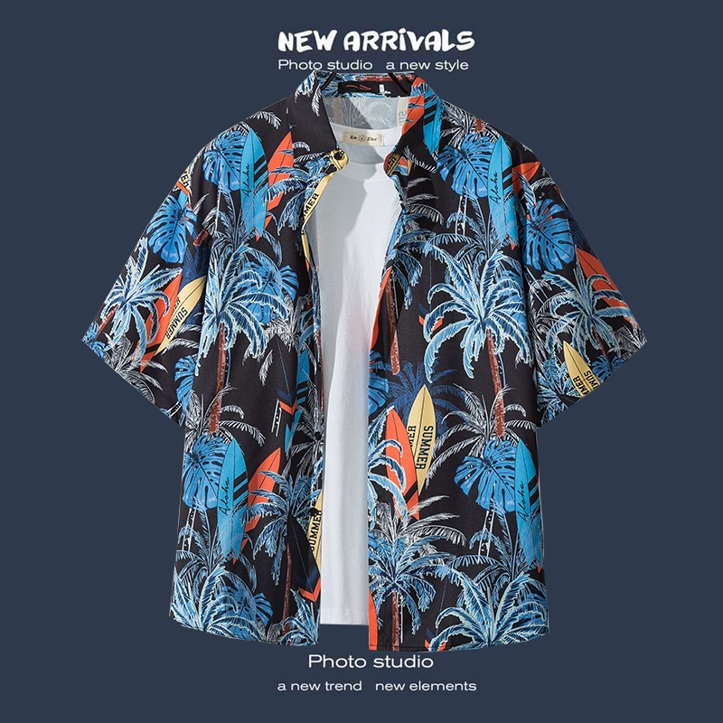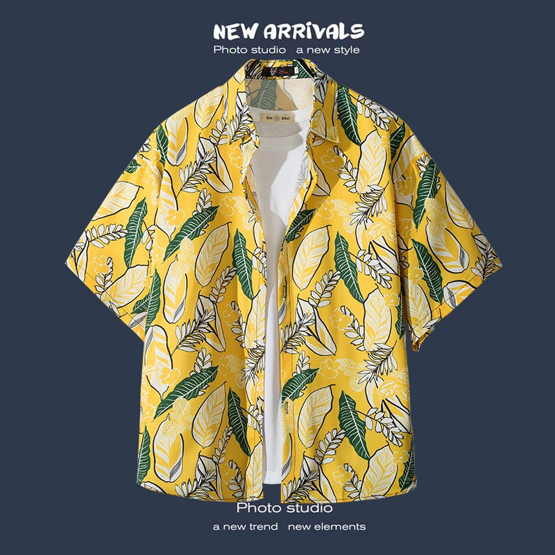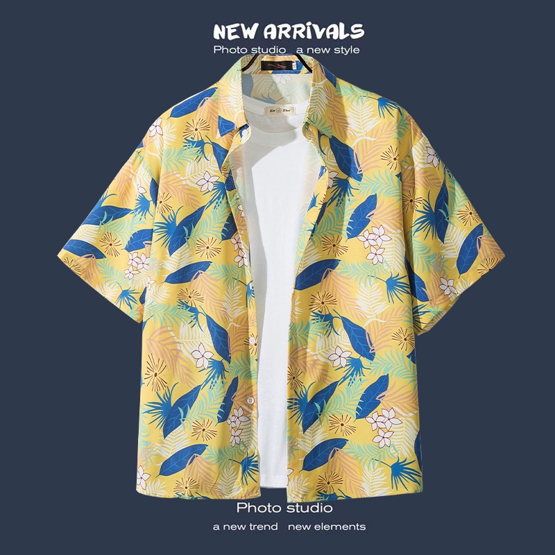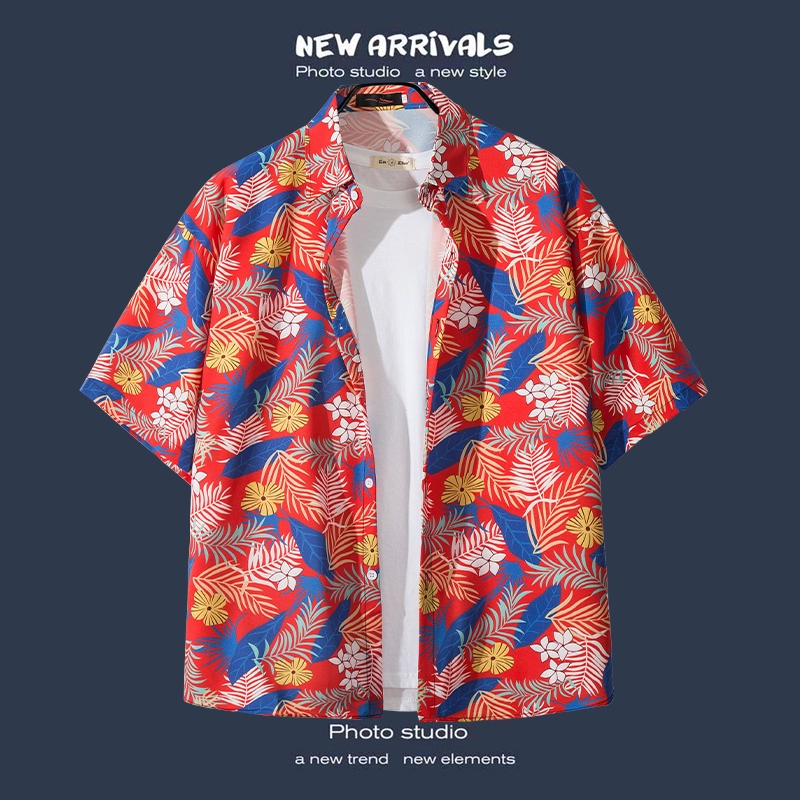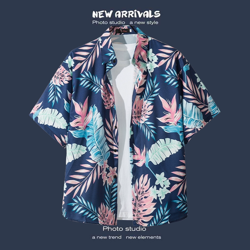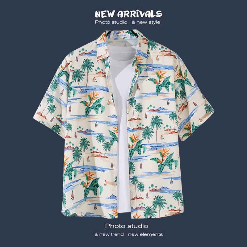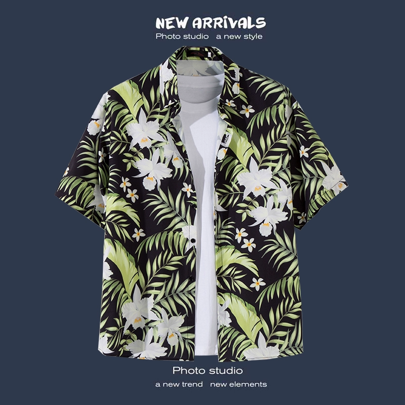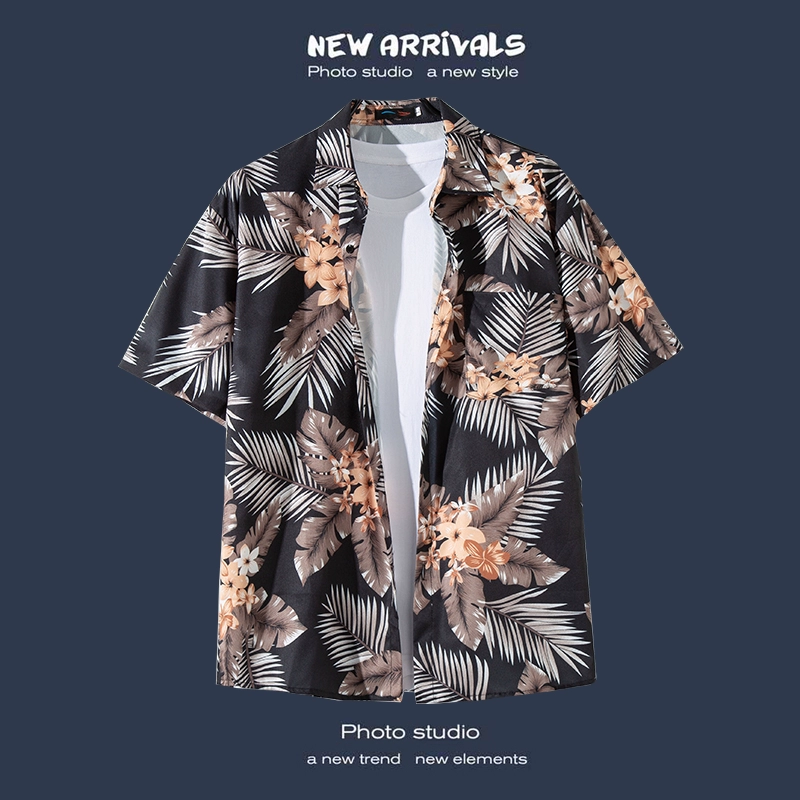 | nameOriginal | Seaside vacation versatile floral shirt men's short-sleeved ins handsome Hawaiian retro style loose beach shirt jacket |