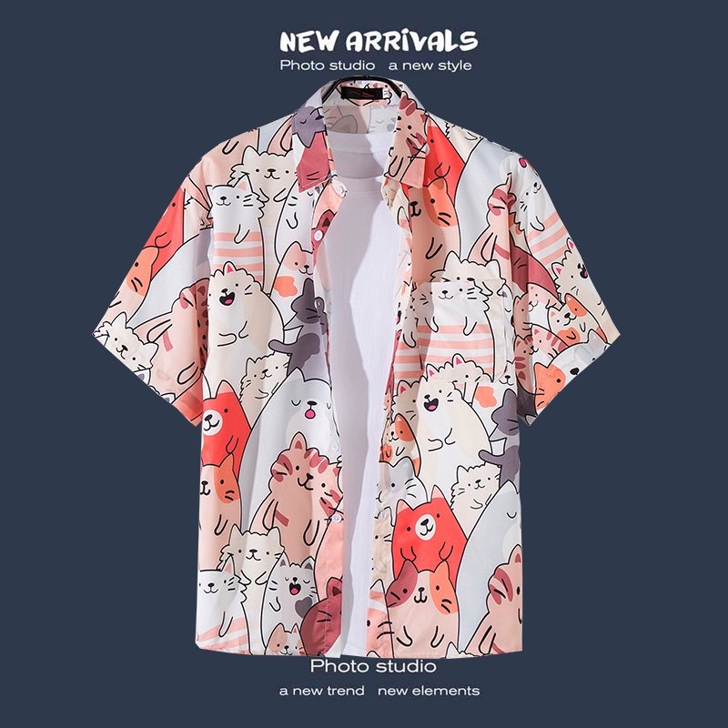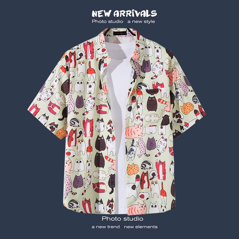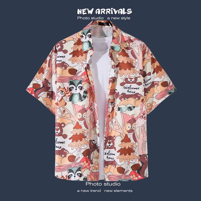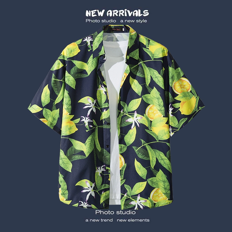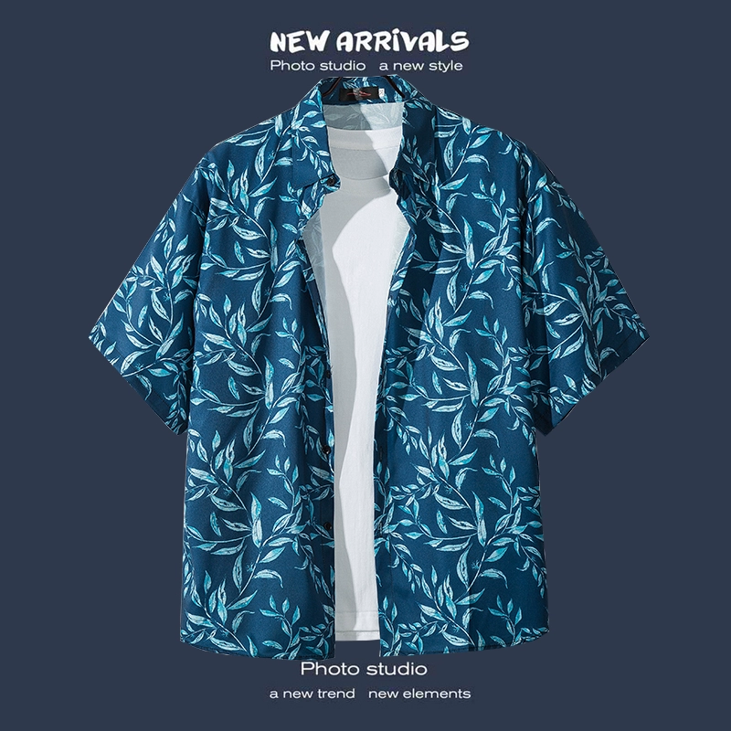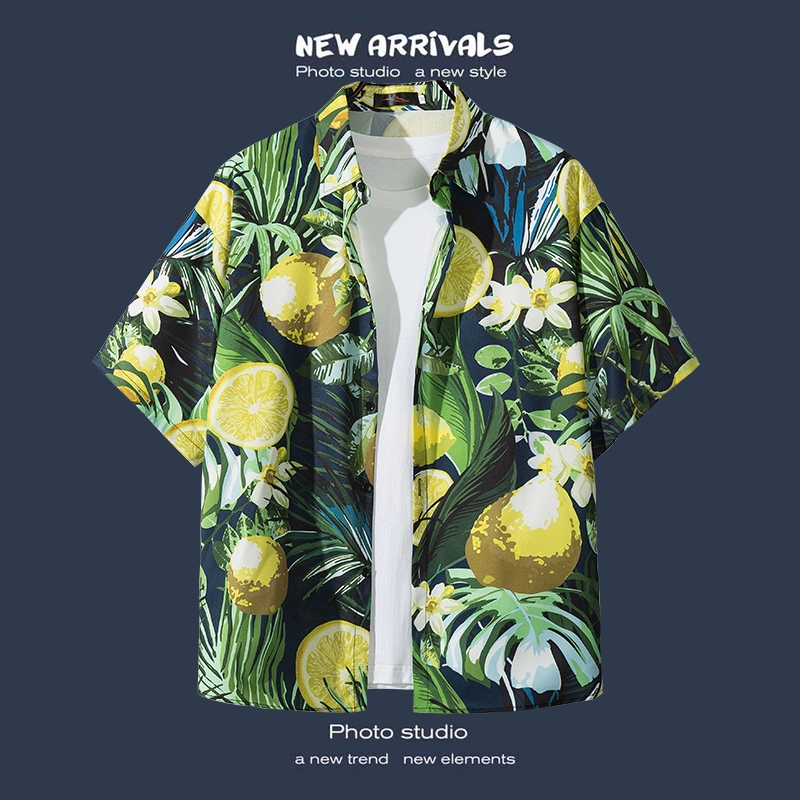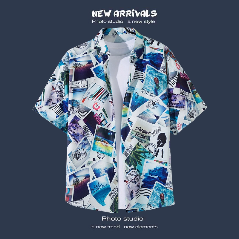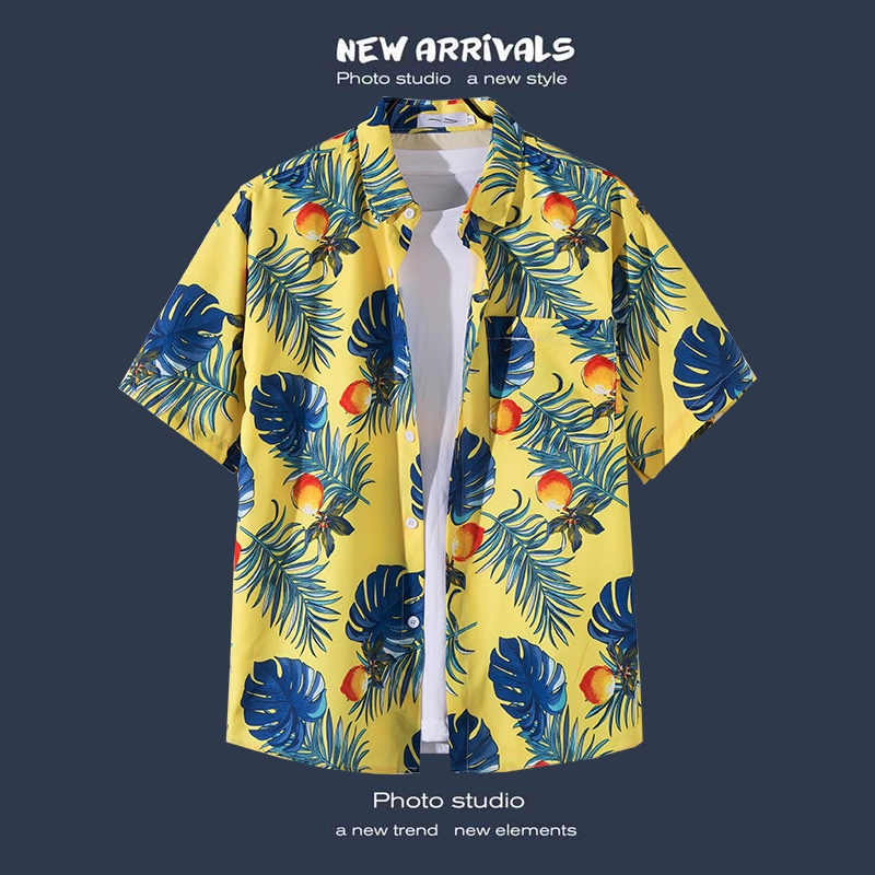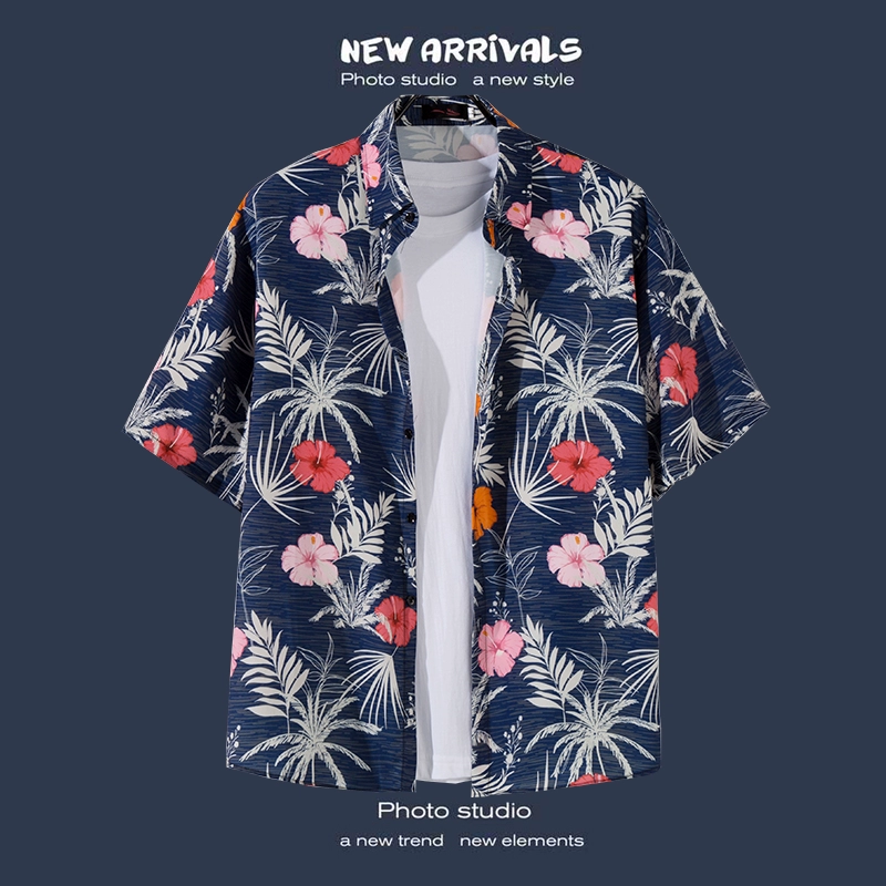 | nameOriginal | Seaside vacation versatile floral shirt men's short-sleeved ins handsome Hawaiian retro style loose beach shirt jacket |