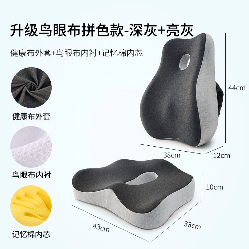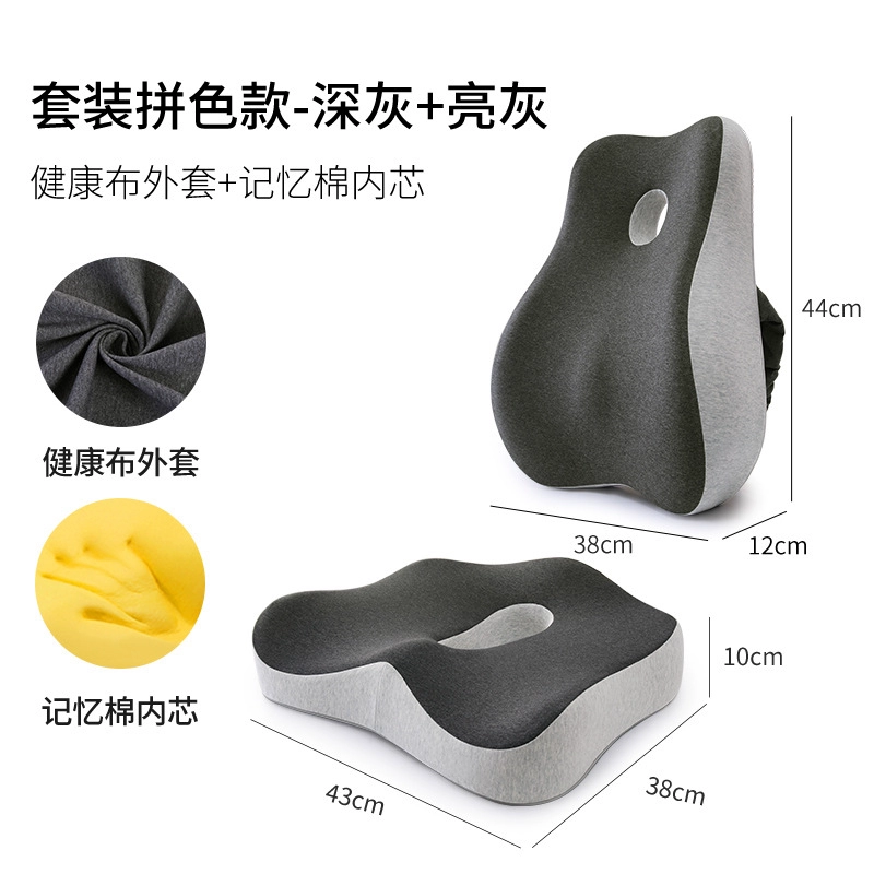 Seat Cushion Office Sedentary Chair Cushion Chair Cushion Back Cushion Waist Protection Integrated Hemorrhoids Breathable Memory Foam Seat Cushion