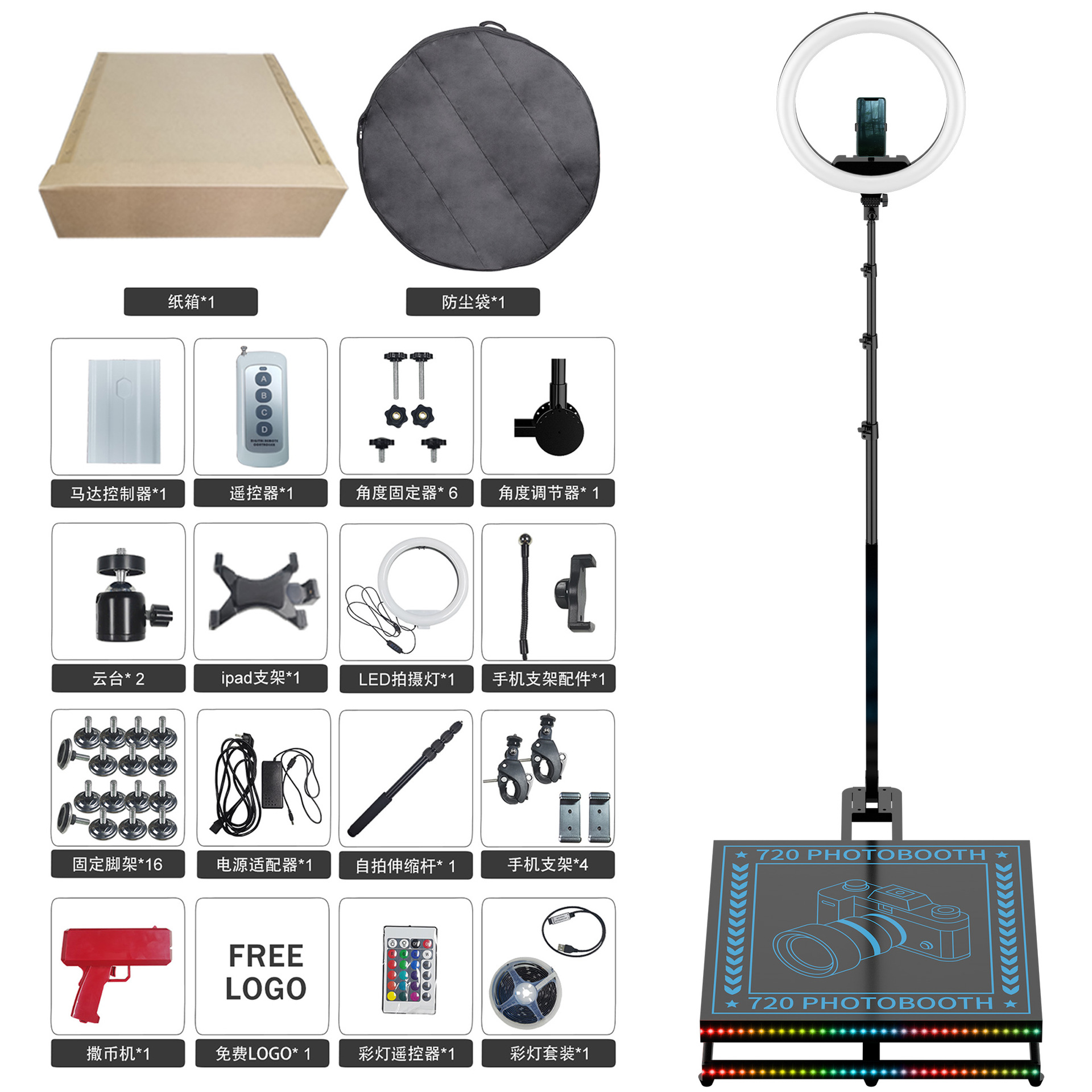 Second generation cross-border hot 360 photo booth 360 ring selfie device 360 surround shooting
