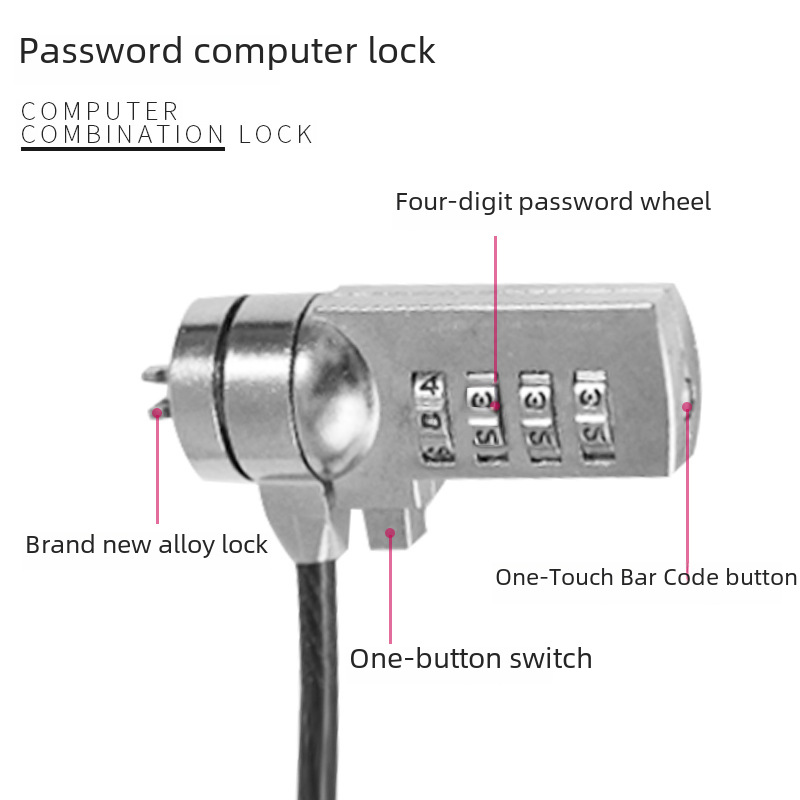 | nameOriginal | Second-generation laptop lock key lock four-digit combination lock 1.8 meter long thick anti-shear wire lock |