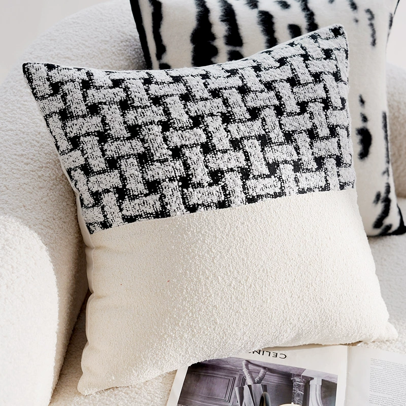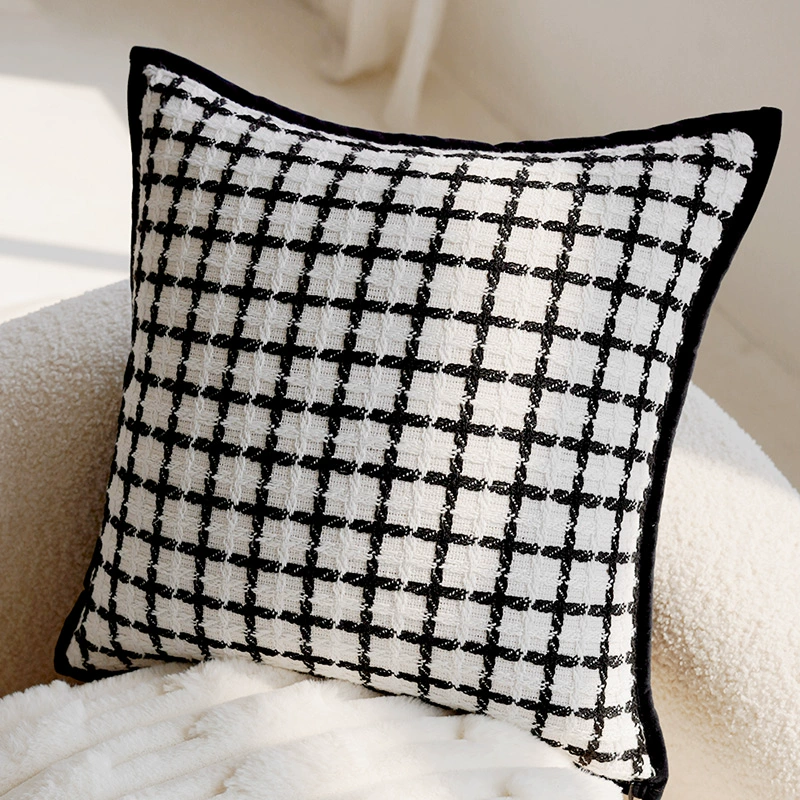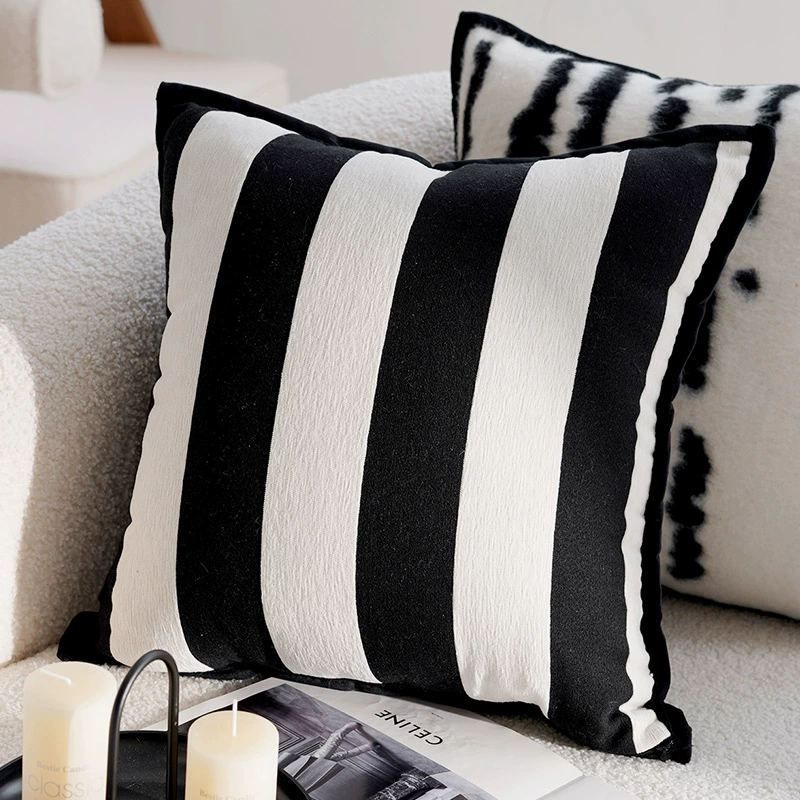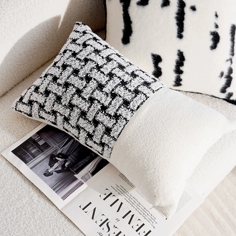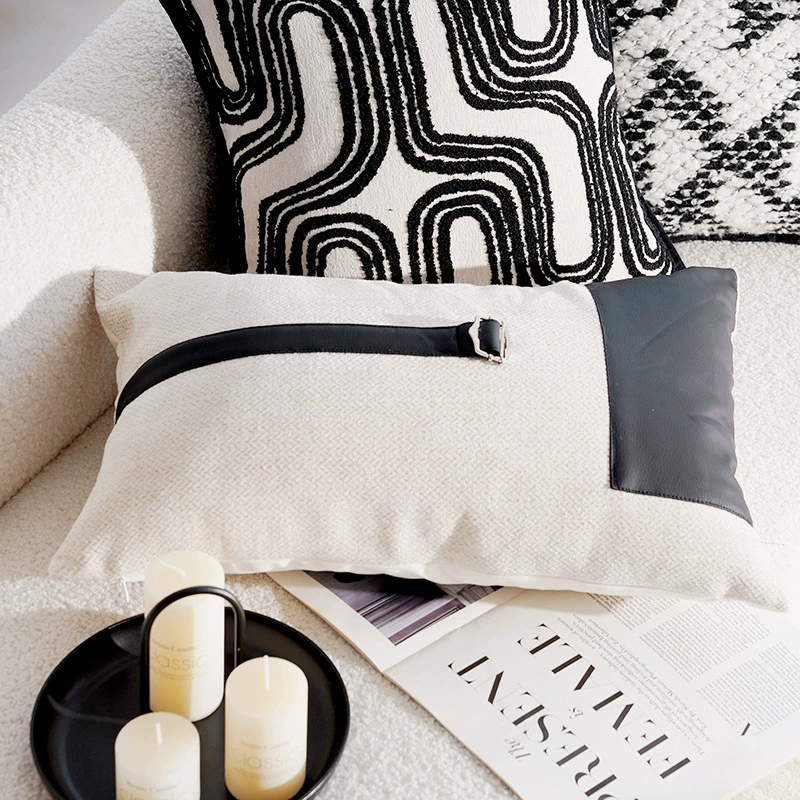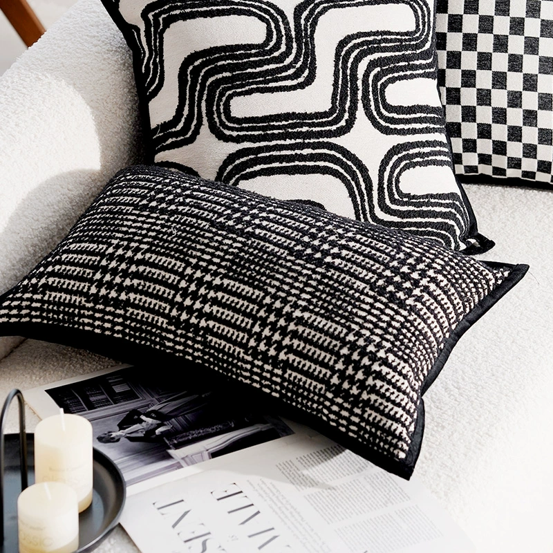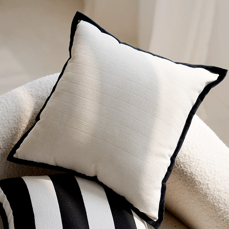 Second-hand light luxury French pillowcases, high-end cushions, black and white pillows, bed and breakfast living room sofa, simple cushions and waist pillows