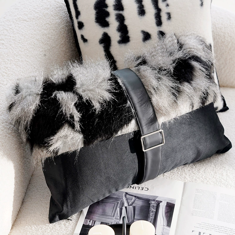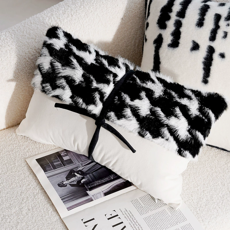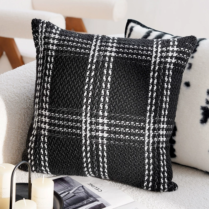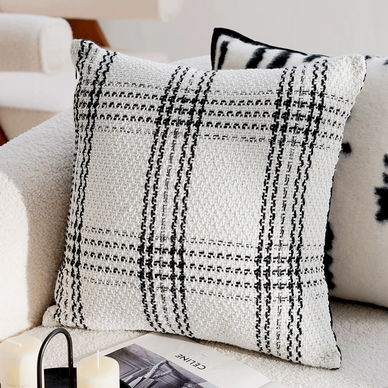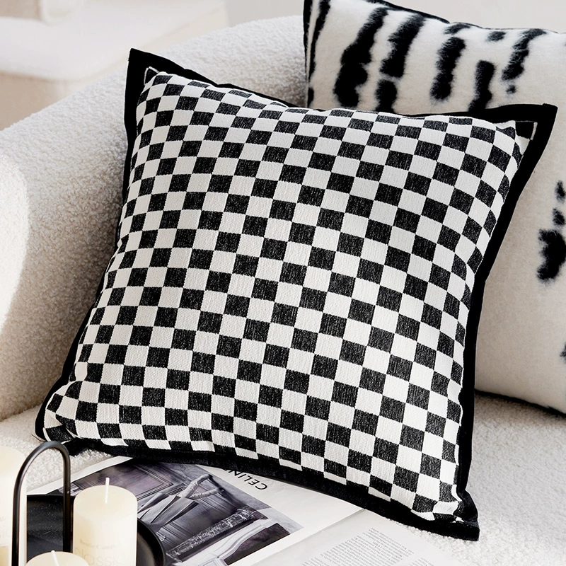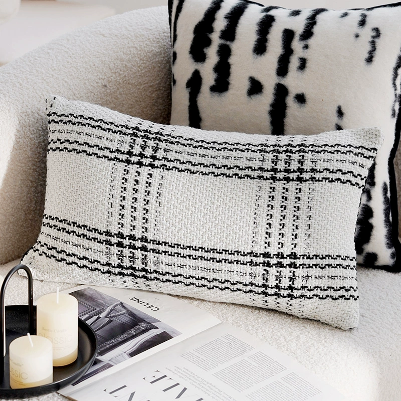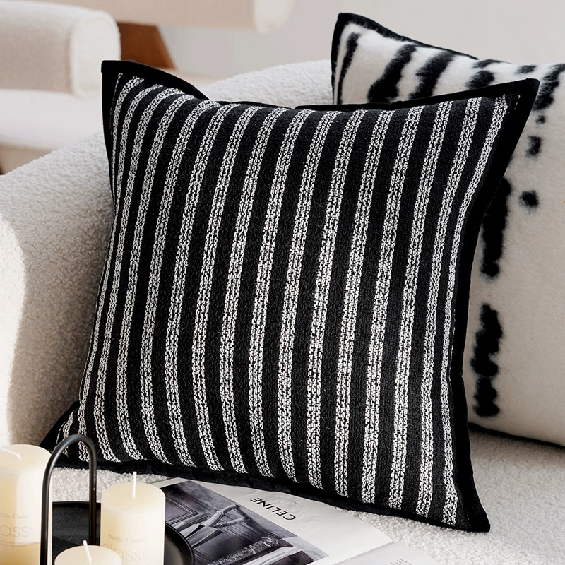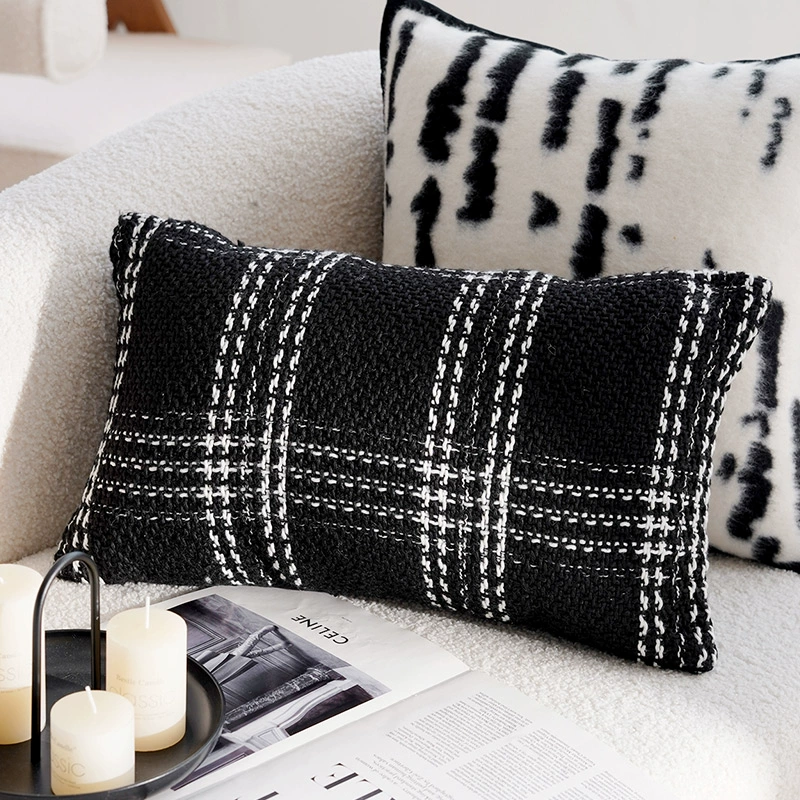 Second-hand light luxury French pillowcases, high-end cushions, black and white pillows, bed and breakfast living room sofa, simple cushions and waist pillows
