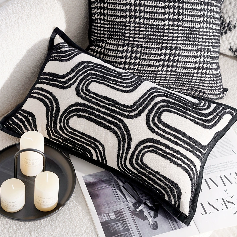 Middle-aged light luxury French pillowcase high-end cushion black and white pillow bed and breakfast living room sofa simple cushion waist pillow