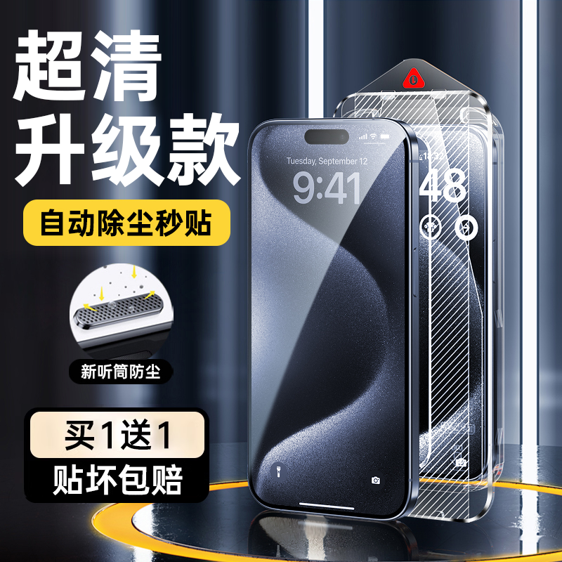 [Second Post] Boxin is suitable for Apple 15promax tempered film iphone15/14pro mobile phone film apple 13 dust-free warehouse 11 film 12 full screen ip coverage new Plus HD x anti-peep s