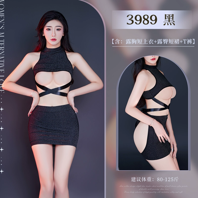 | nameOriginal | See-through short skirt suit, hot American style skirt, mesh see-through dress, A-line super mini deep V hollow top |