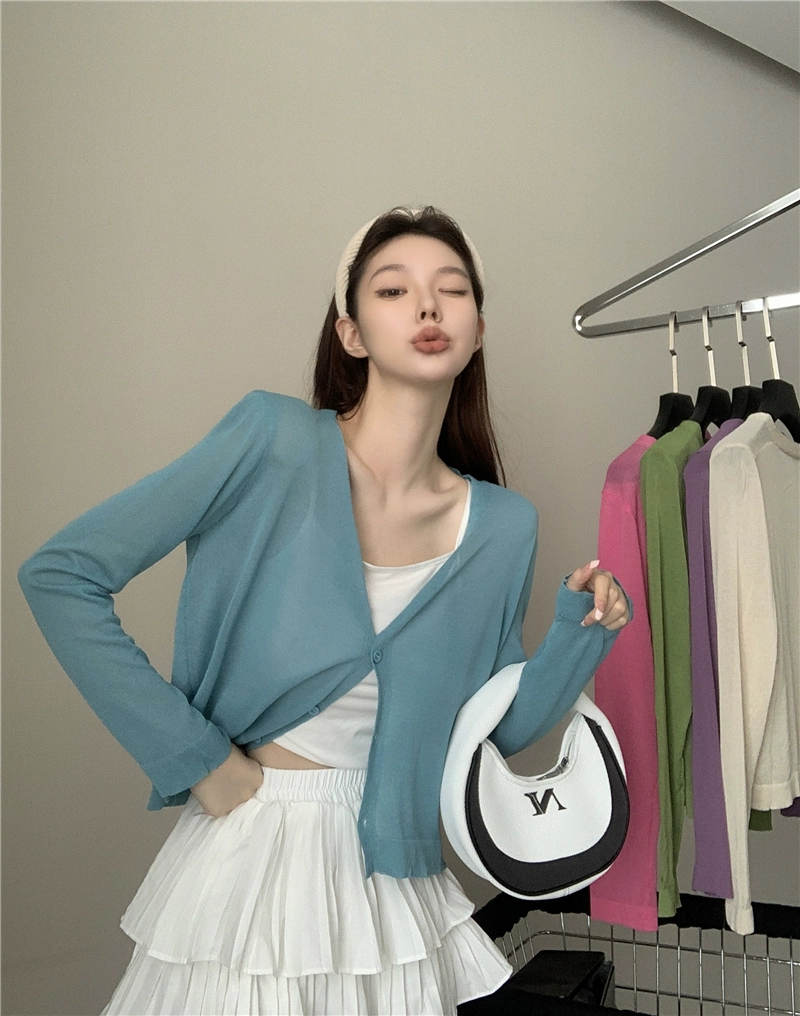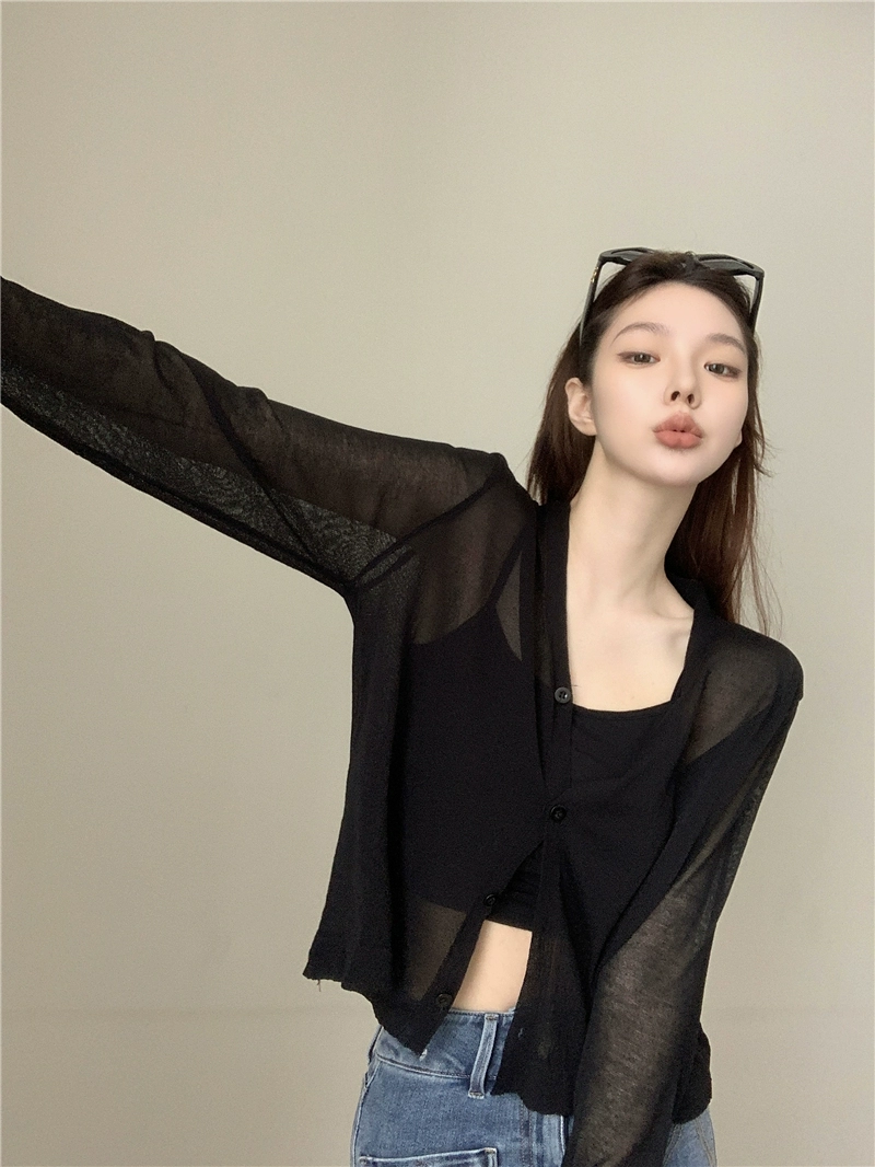 | nameOriginal | See-through v-neck thin jacket sun protection knitted cardigan |