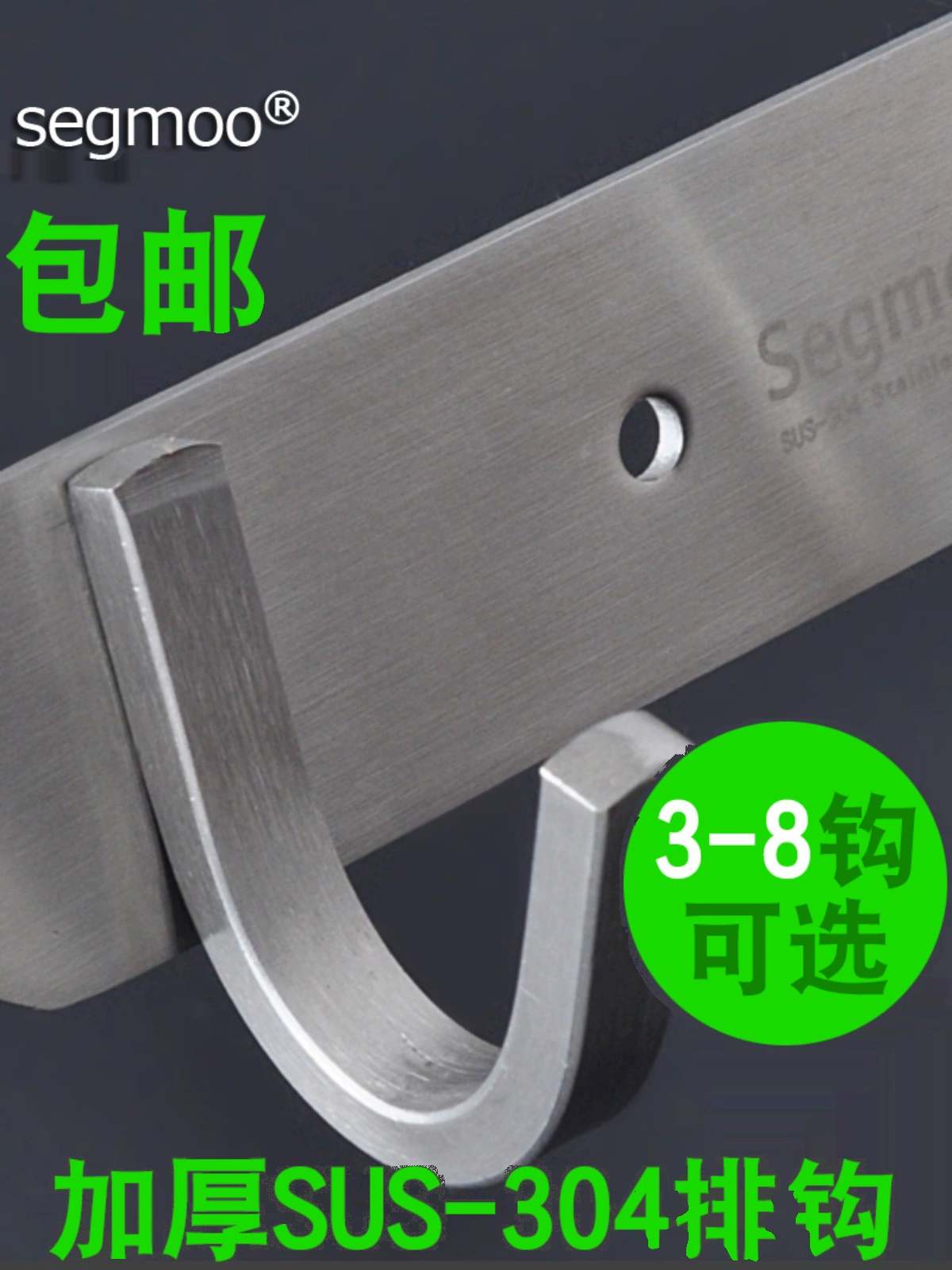 Segmoo linked 304 stainless steel kitchen toilet door back bathroom load -bearing wall linked hook hanging clothes 8 hooks